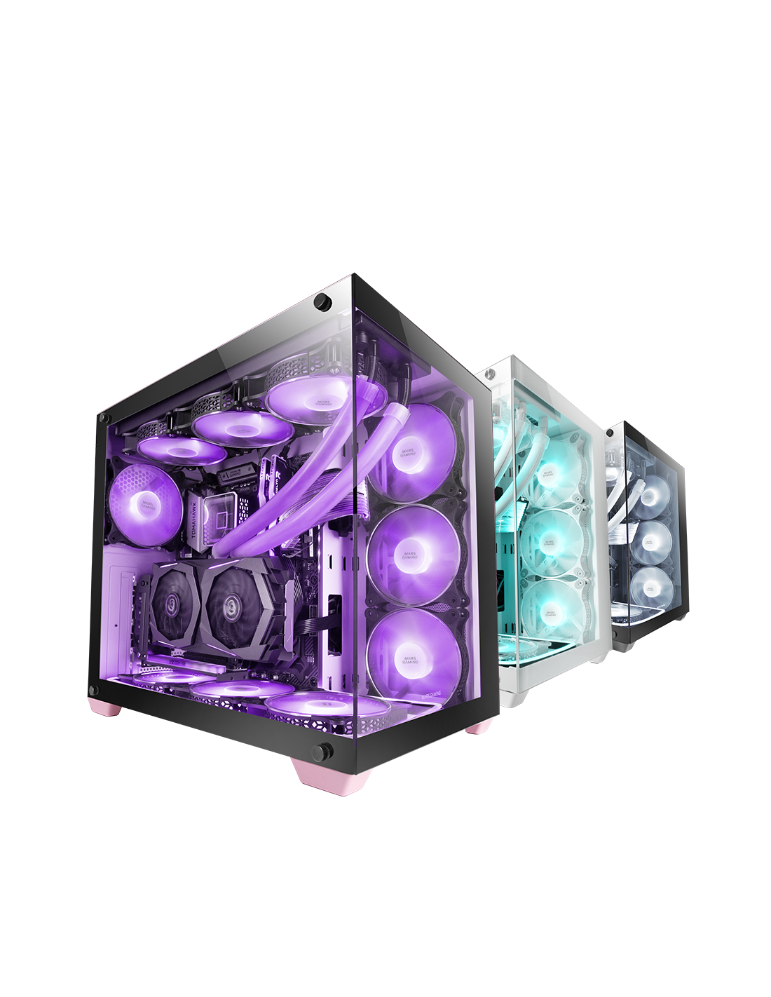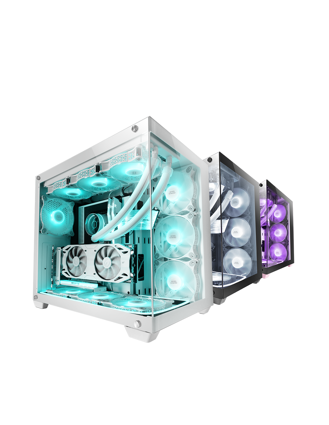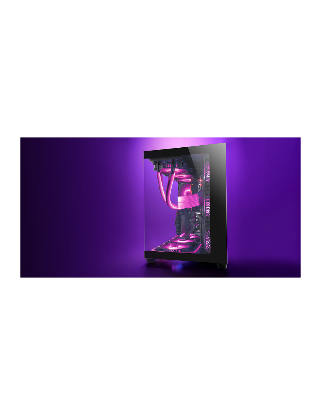 زجاج مقسى مستمر بدون إطار، حجم XXL E-ATX للتكوينات الأكثر تميزًا. مع الدعم حتى 10 مراوح وتبريد سائل ثلاثي في عدة مواقع.