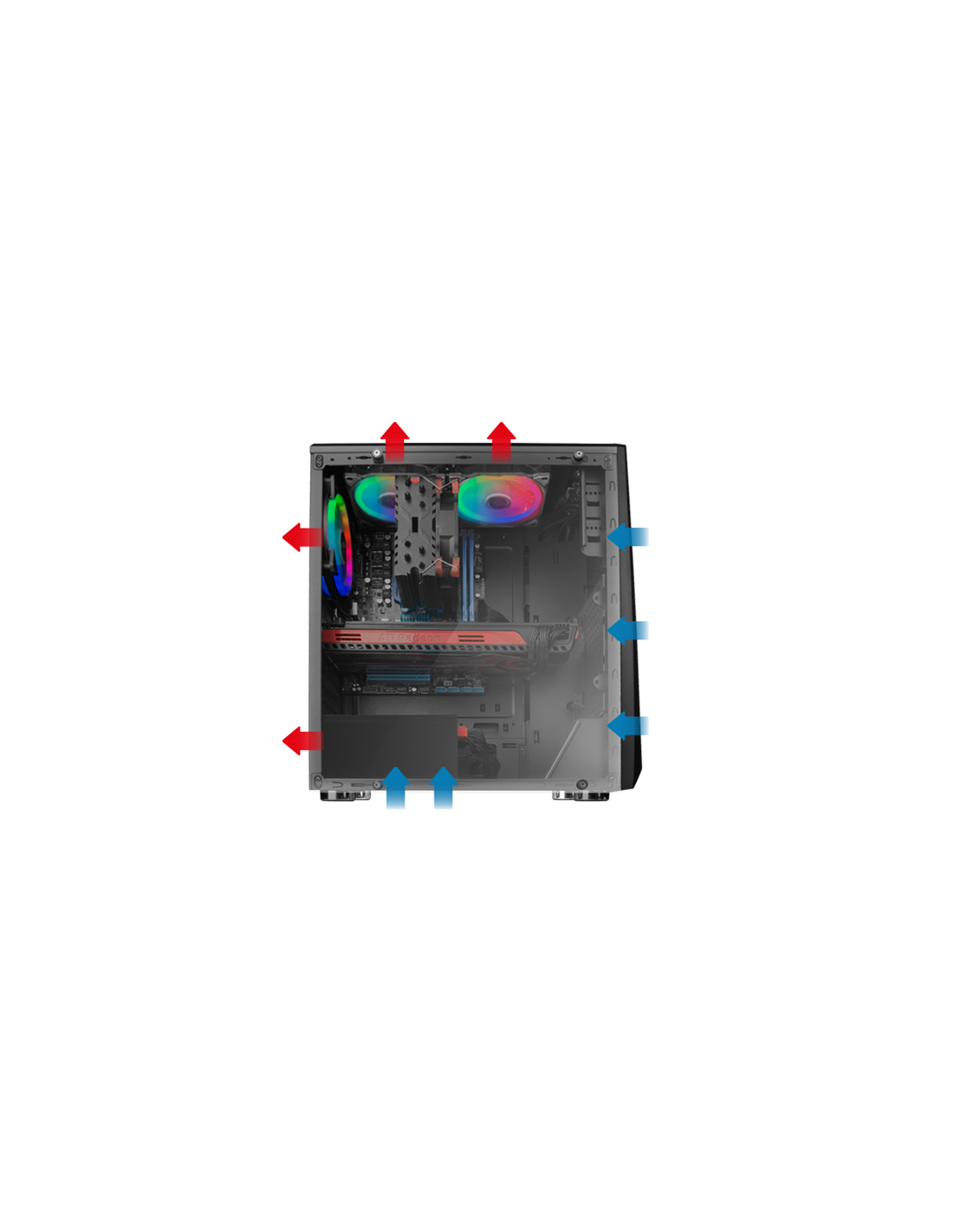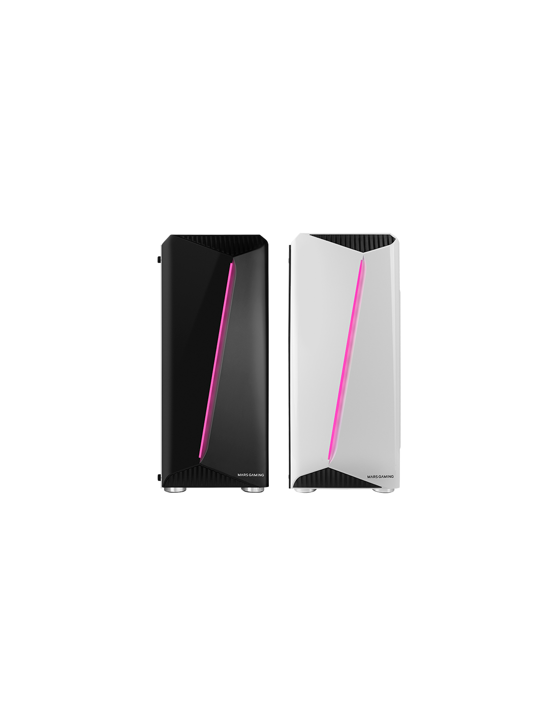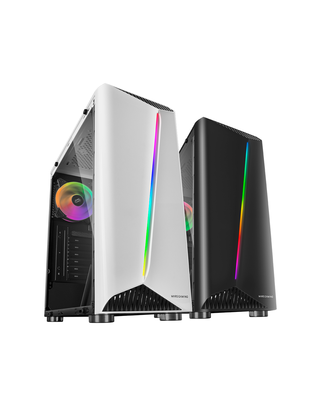 برج نصفي مذهل بتصميم الألعاب مع إضاءة LED RGB ديناميكية متعددة الأثار، مزود بنافذة جانبية كاملة من الزجاج المقسى ومروحة خلفية بحجم 120 مم مع إضاءة RGB ذات حلقة مزدوجة. تتوفر MCX بواجهة أمامية حديثة ذات تصميم مستقبلي وهيكل ATX مُحسن متوفر بلونين، الأبيض والأسود.