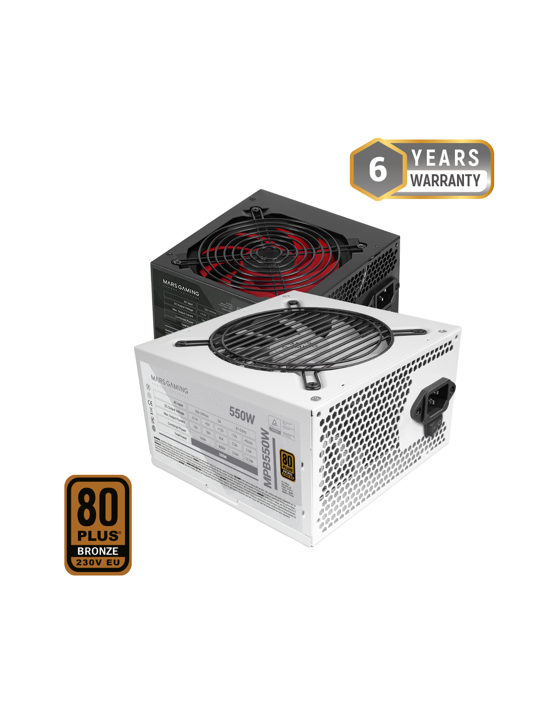 6 سنوات من الضمان وشهادة رسمية 80PLUS BRONZE 230V EU. أقصى متانة بفضل أحدث تكنولوجيا التصنيع SMD عالية الدقة، PCB ثنائي الطبقة من الألياف الزجاجية ومكونات من الدرجة A للموثوقية الكلية. هدوء تام مع تكنولوجيا AI-RPM الجديدة. كفاءة DIGITAL APFC بنسبة 99% ، كفاءة كهربائية بنسبة 90% ، أسلاك سوداء مسطحة طويلة جدا وجميع أنظمة الحماية والأمان متضمنة.