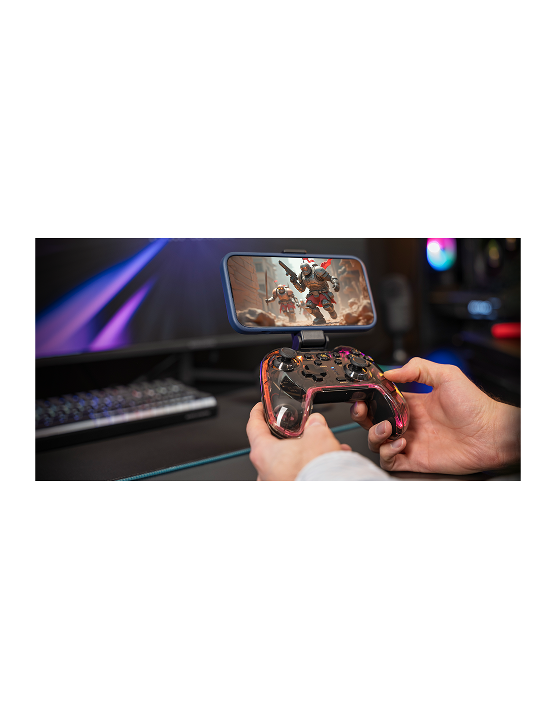 الـ MGP-BT2 هو الجيم باد البلوتوث النهائي مع توافق متعدد الأنظمة، والمريح مع تقنية البلوتوث 5.0 ودمجه للأزرار التناظرية، بما يوفر رد فعل تدريجي مثالي لألعاب السباقات و FPS. بالإضافة إلى ذلك، يوفر نظامه لبرمجة الماكرو في الأزرار الخلفية إمكانية تخصيص الأوامر للحصول على تفوق تنافسي. مع حامل قابل للإزالة للهواتف الذكية يصل حجمها إلى 7 بوصات، إضاءة نيون RGB واهتزاز مزدوج، يُقدم هذا الوحدة تجربة لعب دائمة على أي جهاز.
