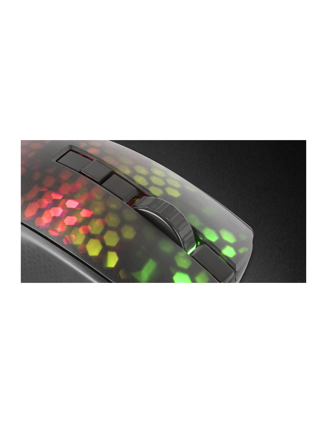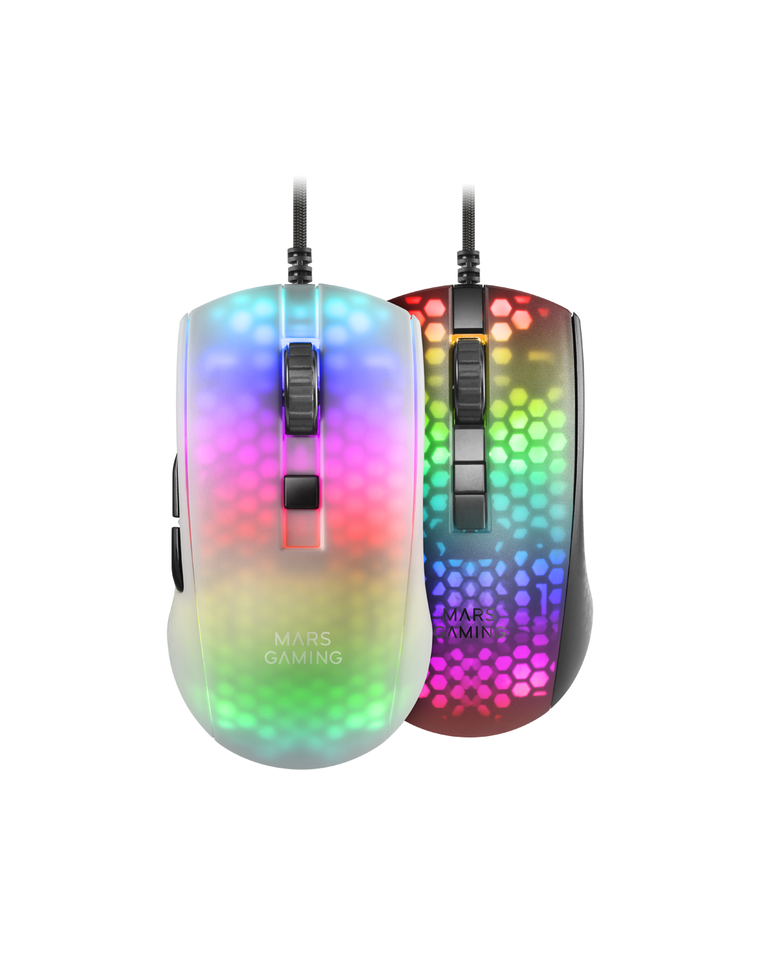لعشاق الأجهزة الخفيفة بوزن 58 غرام فقط، ولكن بدون أي فتحات في هيكلهم ومع تأثير إضاءة RGB شفاف رائع. دون التخلي عن أفضل الأداء مع بصريات متقدمة مع 12800DPI، كابل Paracord خفيف الوزن، مفاتيح Huano الميكانيكية وبرنامج تحكم قوي.