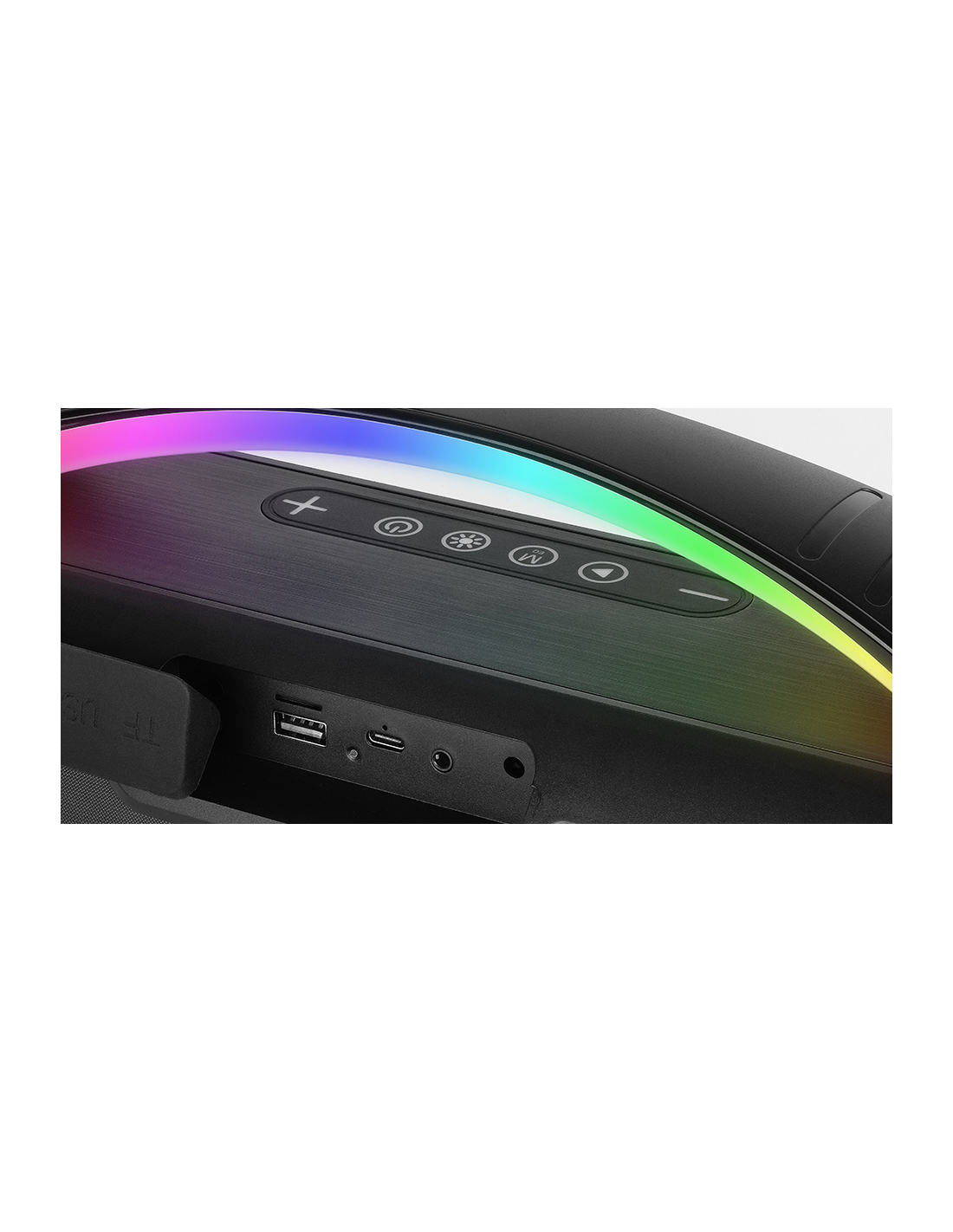 - Bluetooth 5.3، USB، MicroSD، AUX-IN، FM ووظيفة اليدين الحرة