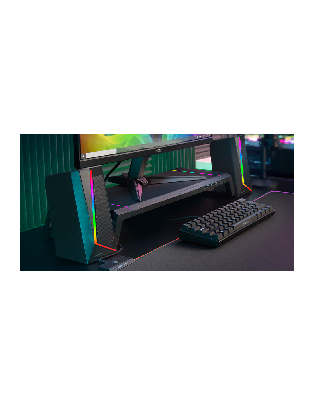 مكبرات الصوت المدهشة بقوة 20 وات، معالج الصوت المتقدم DSP مع التفاعل المكاني متعدد المستويات والجهير المحسن، نظام الإضاءة الديناميكي RGB المدهش والاتصال الكامل جاك + بلوتوث 5.0.