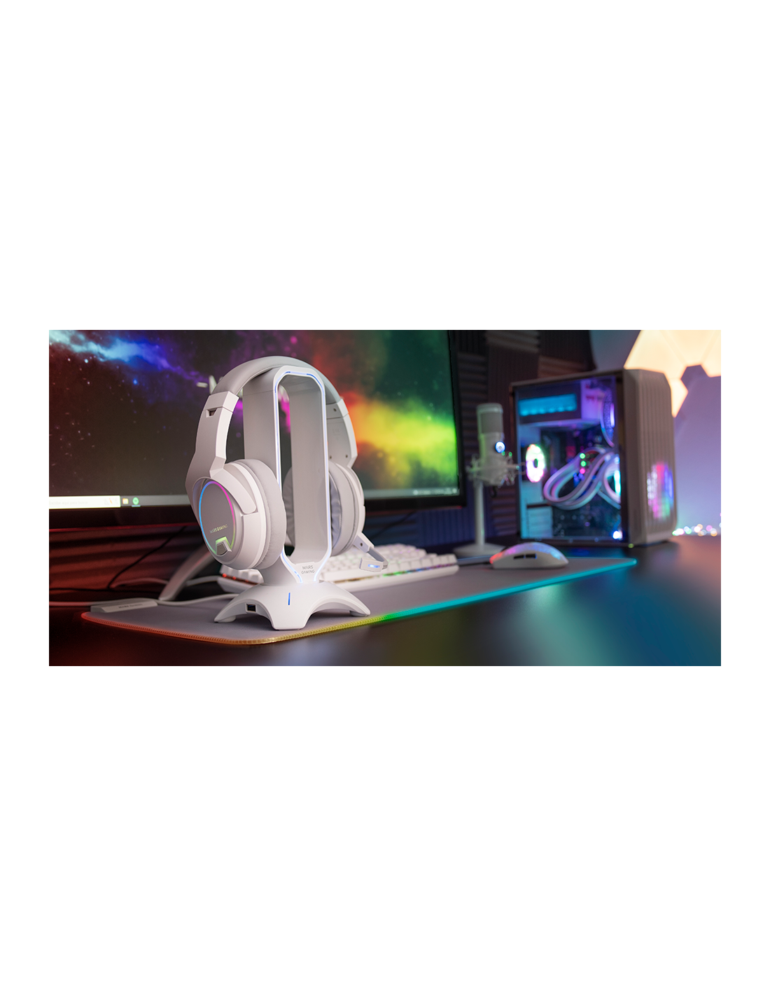 سماعات لاسلكية مع إضاءة ARGB flow، تصل إلى 40 ساعة من البطارية، ميكروفون قابل للإزالة مع إلغاء الضوضاء الرقمي ENC، وظيفة VOICE MONITOR والتوافق العالمي.