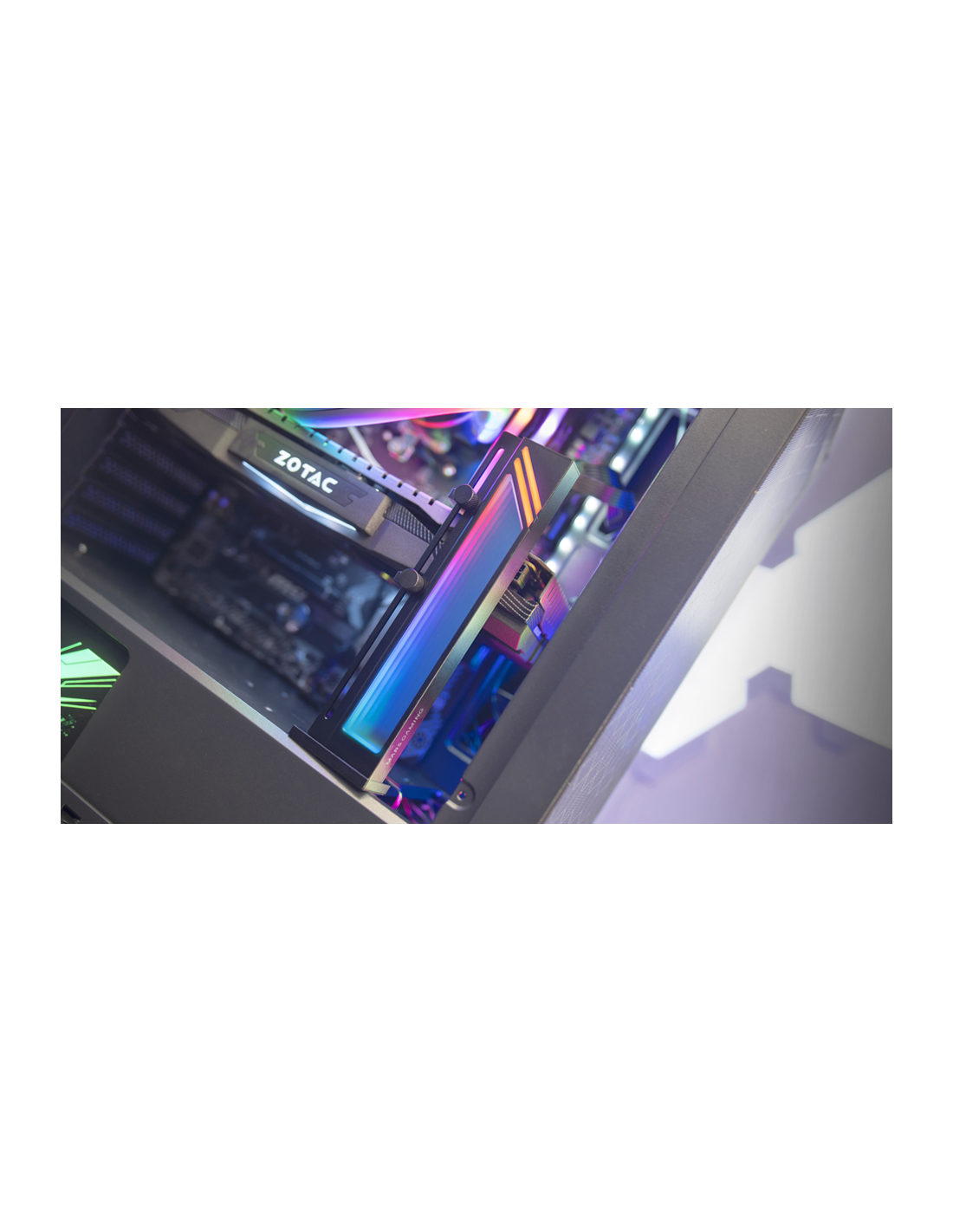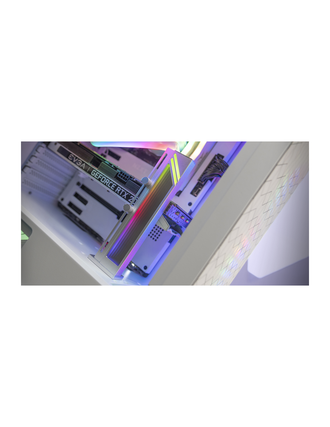 Innovative Unterstützung für Grafikkarten, die eine rutschfeste magnetische Basis und eine blendende Ästhetik mit der ARGB-Infinity-Spiegelbeleuchtung kombinieren. Mit seinem universellen Design passt es sich an jede Grafikkarte an, die Stabilität und einen Hauch von Anpassungsanpassungen an Ihren PC anbietet. Erhältlich in Schwarz und Silbergrau, ist es perfekt in Ihre Konfiguration integriert.