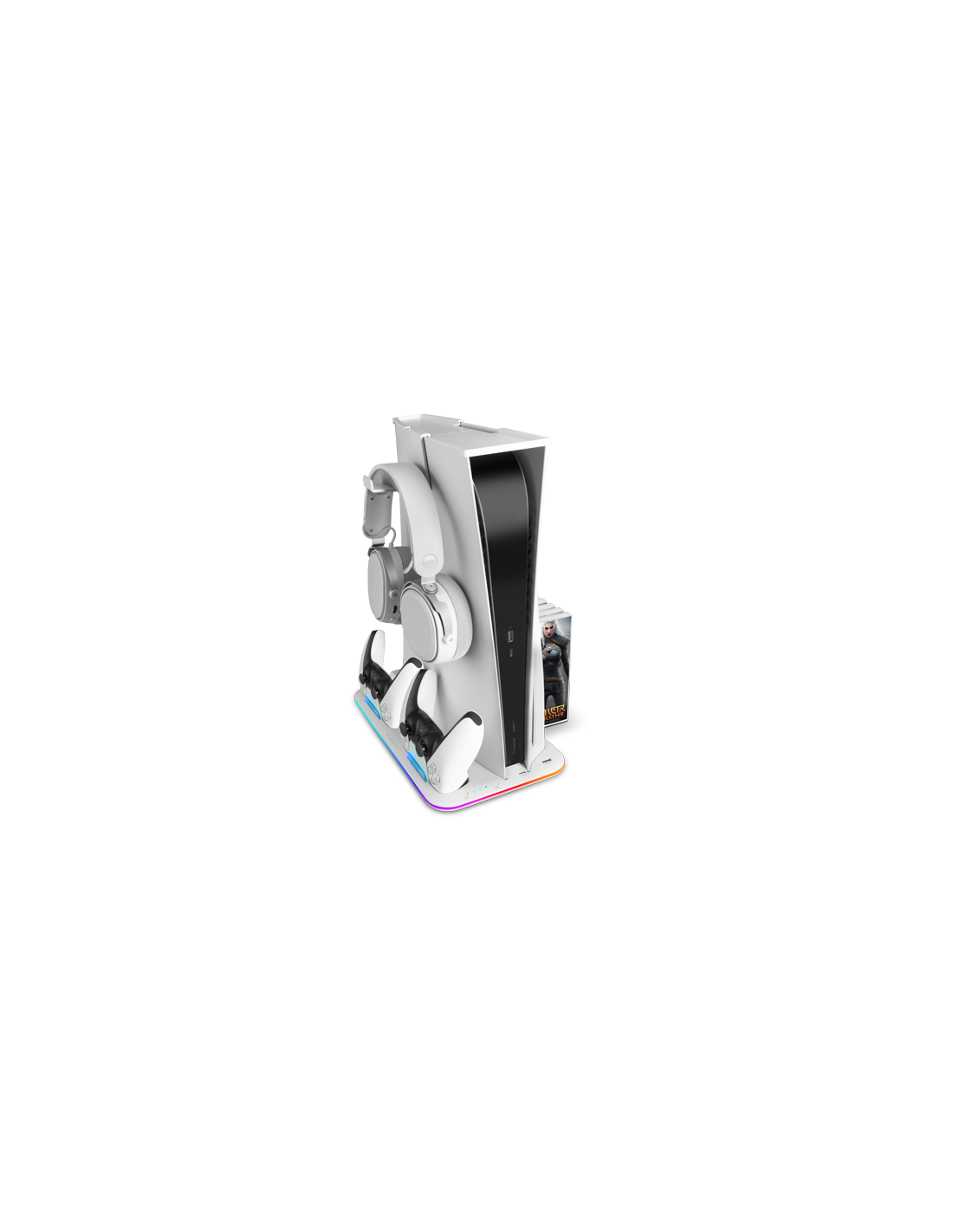 Der MPS5-B-Support für PS5 ist der All-in-One-Spielansatz, der effizientes Kühlen, Laden, Kopfhörerhalter und Spielspeicher kombiniert, um sicherzustellen, dass sich alle Ihre Accessoires bequem an einem Ort befinden. Kompatibel mit Standard- und Digital Edition PS5-Konsolen, diese Unterstützung soll Ihre Spieleinstellungen verbessern und Ihnen ein perfektes Spielerlebnis mit einer Vielzahl von RGB-Neonbeleuchtungsmodi anbieten. Mit einem zusätzlichen USB-Anschluss können Sie Ihre Geräte hochladen und anschließen, ohne dass zusätzliche Kabel erforderlich sind.