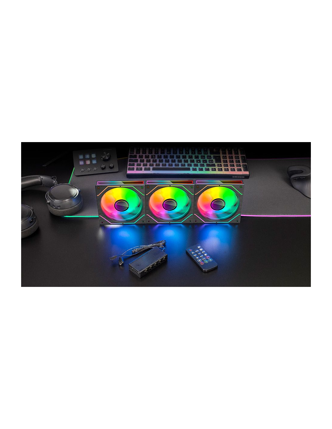 Das MF-3DPROKIT-Fan-Kit kombiniert fortschrittliches Design, Leistung und Anpassung mit 3D-Infinity-Spiegelbeleuchtung mit 360º-Effekten und einem dynamischen Argb-Rahmen. Ausgestattet mit 120-mm-Lüftern mit FDB-Lager garantiert den stillen und dauerhaften Betrieb. Ihr Argb-Hub für bis zu 10 Lüfter und der Fernbedienung ermöglichen die Anpassung der Geschwindigkeit und Beleuchtung in Echtzeit. Kompatibel mit Asus Aura Sync, Mystic Light Sync und RGB Fusion, ist es perfekt in jedes Gaming-Setup integriert.