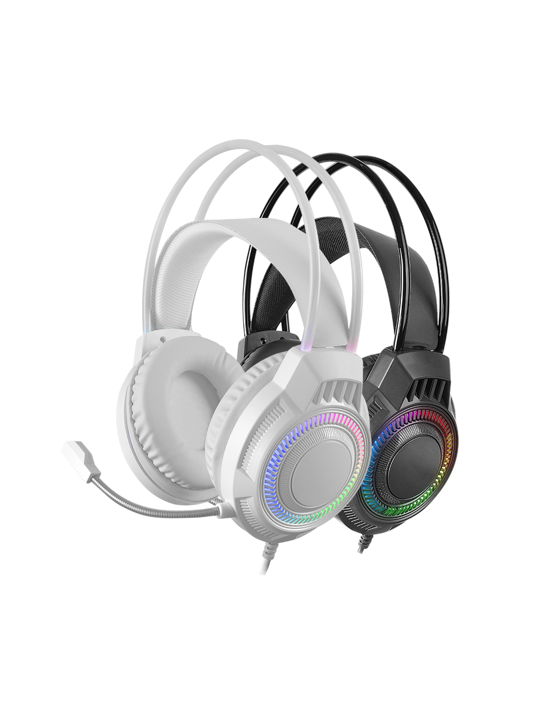 MH124 Helme kombinieren Performance, Komfort und Design, um Ihnen in jeder Sitzung ein einzigartiges Klangerlebnis zu bieten. Mit dem Beleuchtung von FRGB-Regenbogen, der Ihr Setup umwandelt, ist ein ergonomisches Design mit einstellbarem schwebendem Kopfband für lange Nutzungsstücken und ein flexibles Mikrofon, das eine klare Kommunikation garantiert, ideal für Spiele, Arbeit oder Streaming. Mit der integrierten Lautstärkeregelung können Sie sofort ein Anpassungen vornehmen, und seine Multiplattform-Kompatibilität mit Adapter 2 in 1 stellt sicher, dass Sie sie an jedes Gerät anschließen können, von Konsolen bis zum PC mit Leichtigkeit.