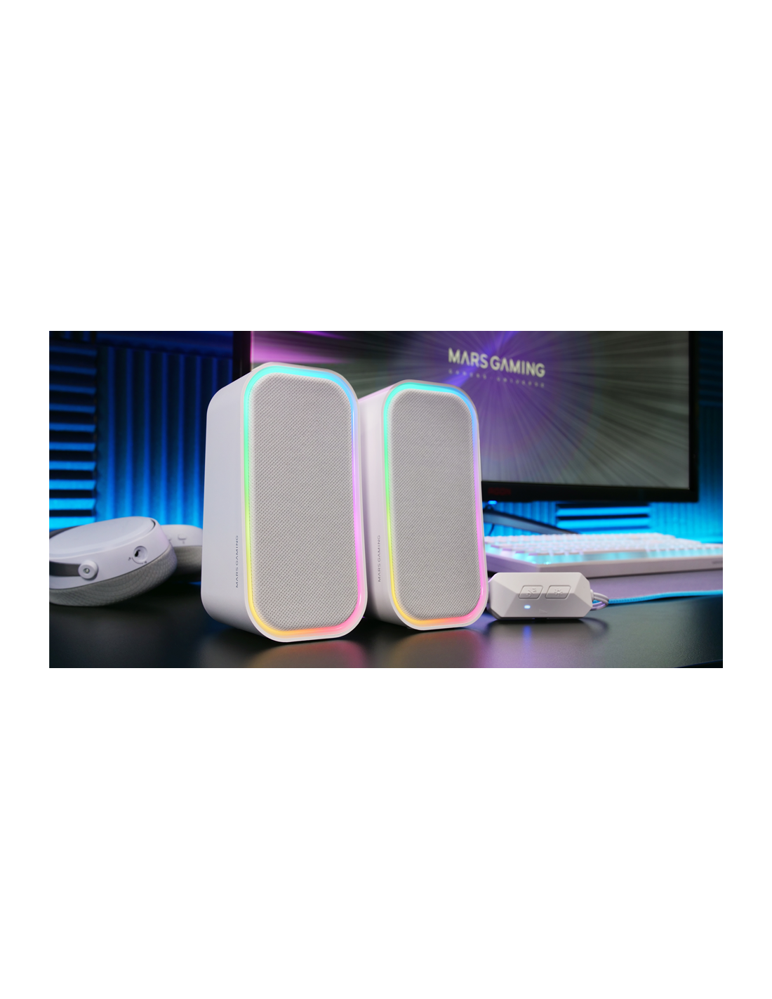Verwandeln Sie Ihr Spiel mit den 20W MS-OM-Lautsprechern und den fortgeschrittenen DSP-Chipsatz, der ein klares und umhüllendes Sound anbietet. Diese Lautsprecher sind in Schwarz und Weiß verfügbar, auf Ihrem Setup mit dem Front-Design in Textilgitter und einer dynamischen RGB-Beleuchtung. Mit Bluetooth 5.3- und AUX-in-Konnektivität, Steuerkasten und Universalkompatibilität sind MS-OM die perfekte Ergänzung für Ihr Setup.