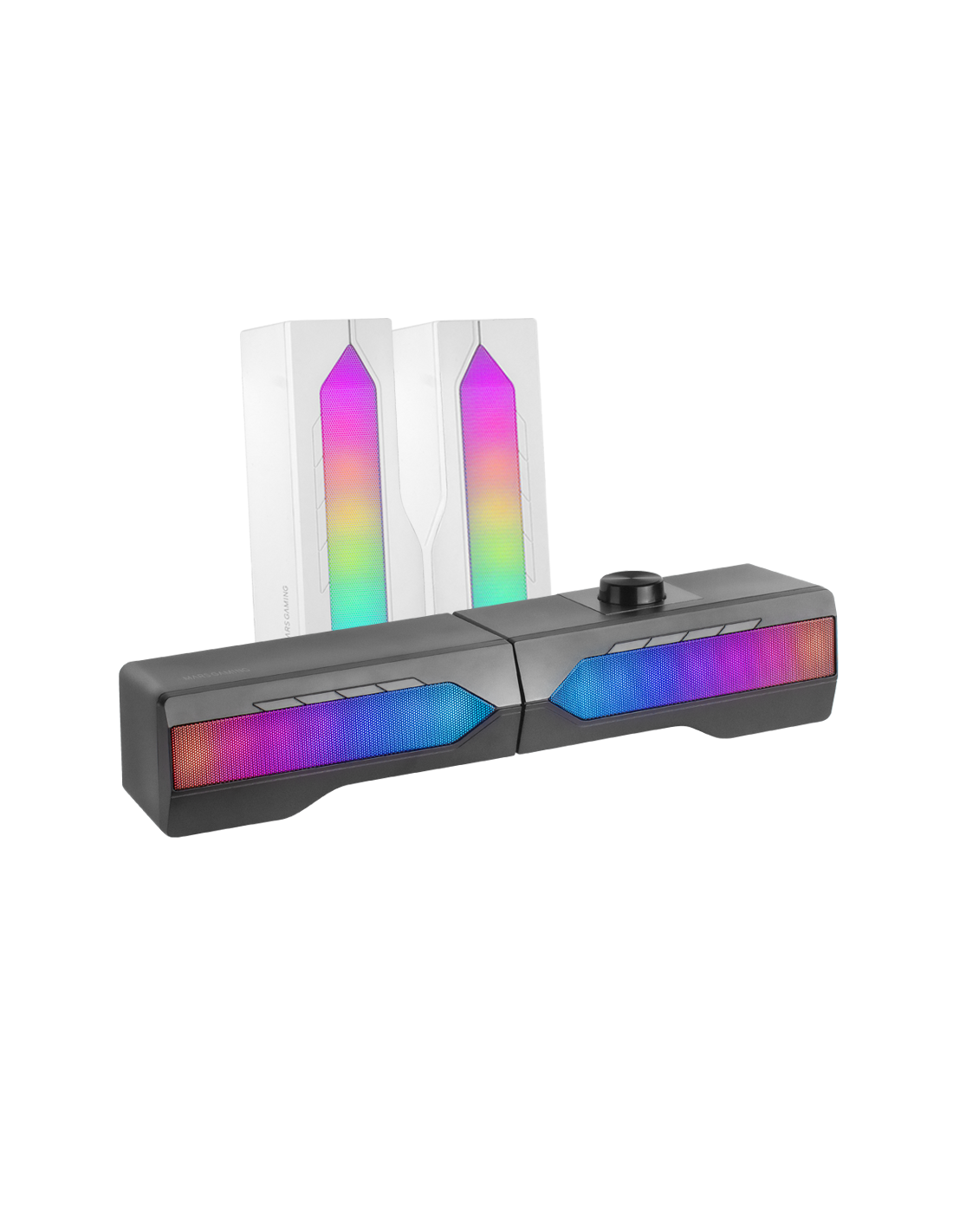 2 in 1: Soundbar oder Lautsprecher 2.0. Sie wählen. Maximales spektakulär mit dem RGB-Netzsystem, erweiterter DSP-Soundprozessor mit verbesserter multife und ernsthafter Räumlichkeit, totaler Konnektivitätsbuchse + Bluetooth 5.0 und ein komfortables Steuerungssystem.