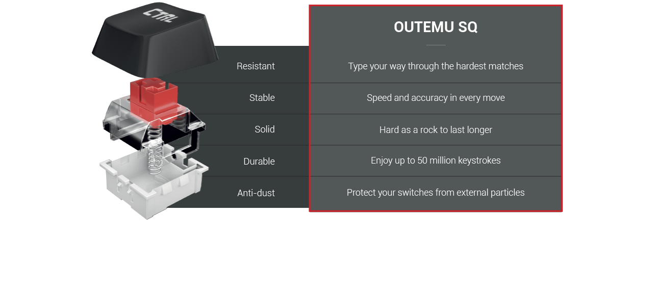 Der MK5 ist aus der Kombination einer vollständigen RGB-Beleuchtung, SQ-Schalter und einem Hochleistungs-MCU-Vision-Chip geboren, was eine mechanische Tastatur erreicht, die für jede Situation geeignet ist. Dank seiner Vorteile garantiert der MK5 außergewöhnliche Leistung, wodurch die beste Option für Liebhaber von mechanischen Tastaturen und den anspruchsvollsten Spielern besteht.