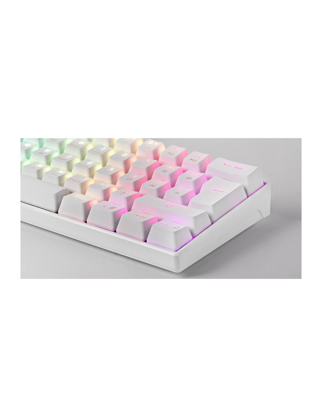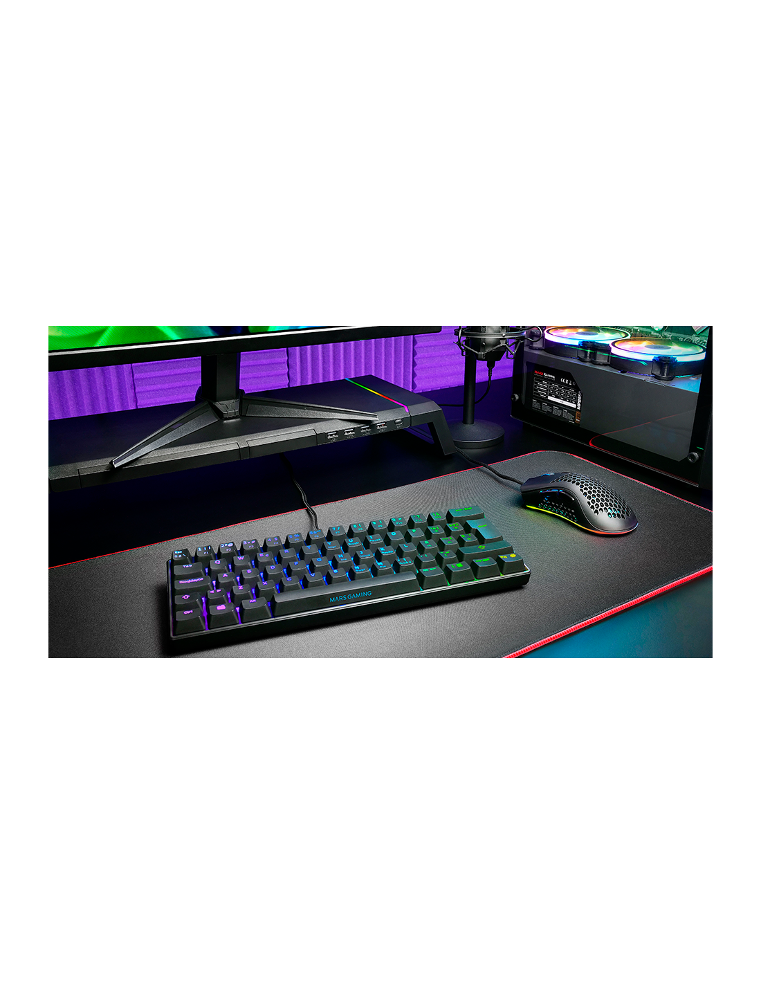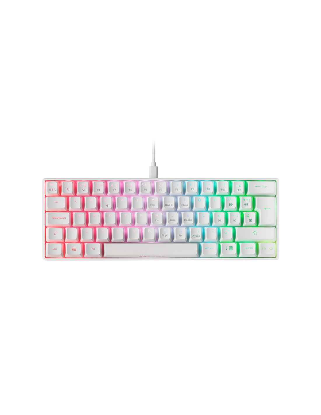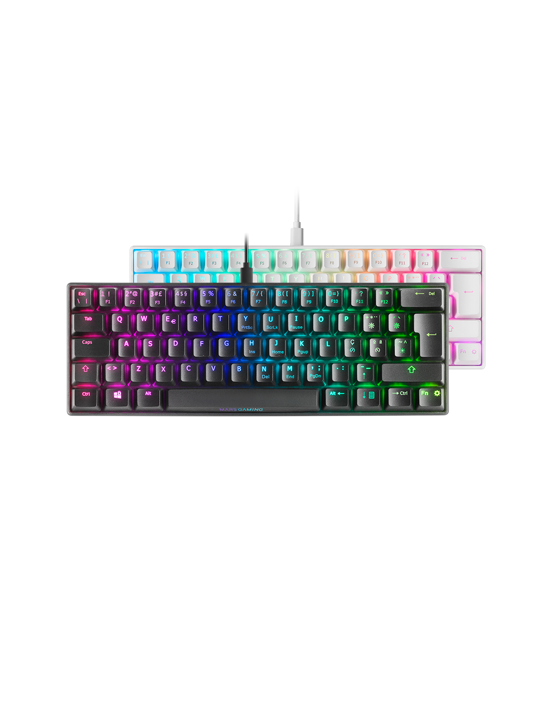 Ultrakompakte Tastaturgröße 60% voller RGB-Chroma, auf die Sie gewartet haben. Mit den besten Outemu Pro-Mechanikalschaltern, USB-A USB-A-Anschluss, 14 Hardware-Beleuchtungseffekte und vollständige Konfigurationssoftware. All dies mit maximaler Kompatibilität der Multiplattform.