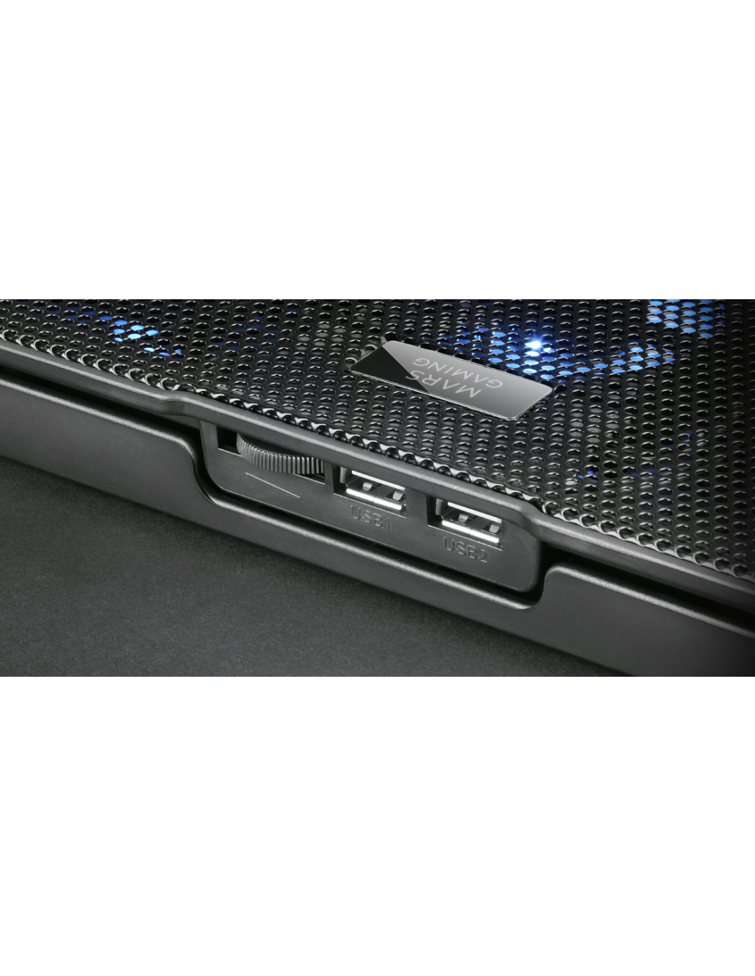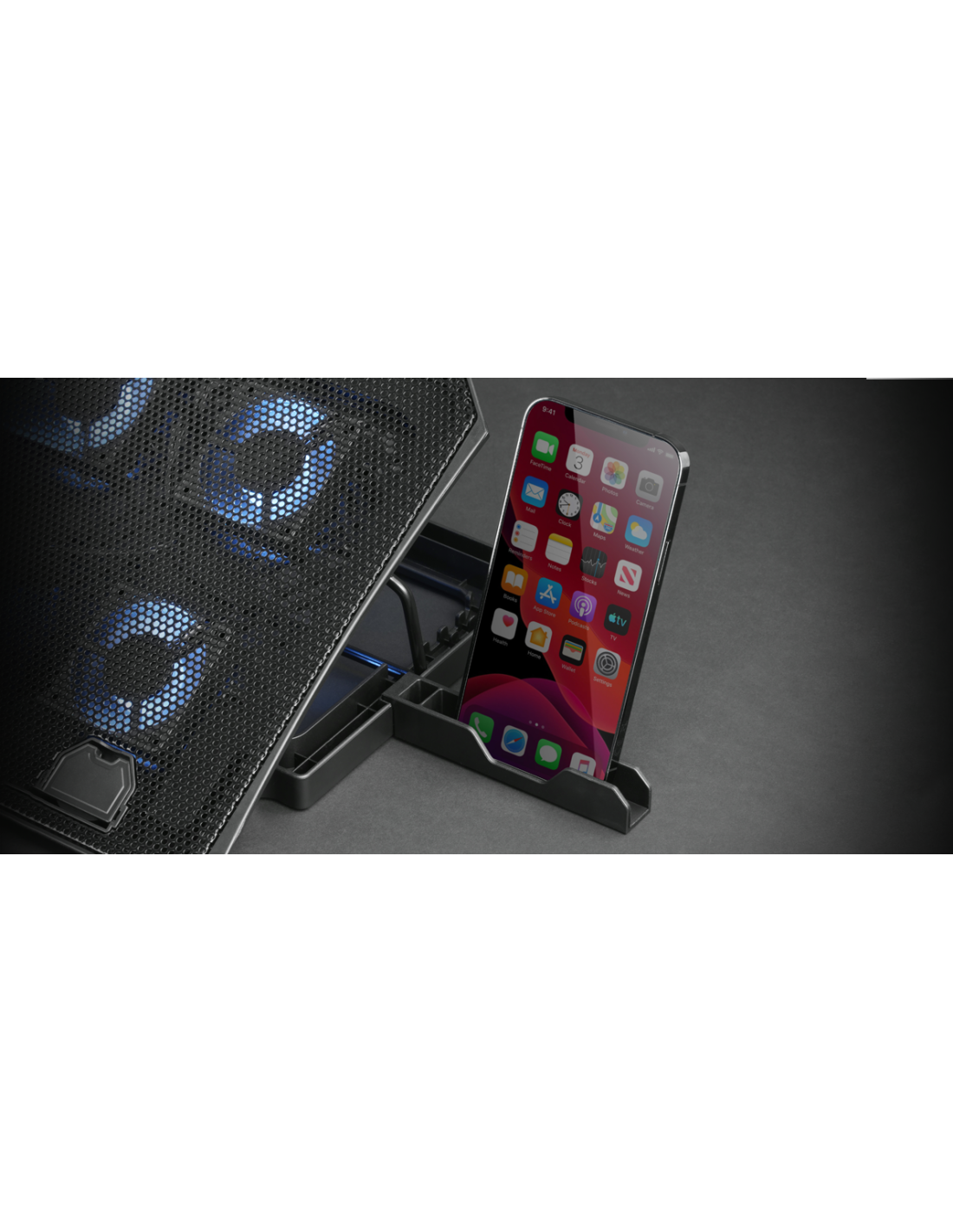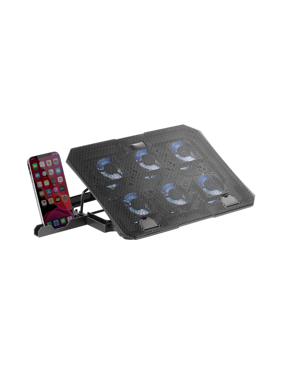 Halten Sie Ihren Laptop kühl und geschützt mit der Kühlgrundlage MNBC23. Entworfen mit stabiler Stahlkonstruktion, Aluminiumgitter und ABS-Gehäuse, mit einem stehenden Merkmal 6 einstellbare Positionen und Smartphone-Halter, bietet eine perfekte Unterstützung für bis zu 16 Zoll. Seine 6 Fans mit blauer LED-Beleuchtung sorgen für eine leistungsstarke und effiziente Kühlung, sodass Sie Ihre Spieleinstellungen genießen können intensive Arbeit, ohne sich um Überhitzung zu sorgen.