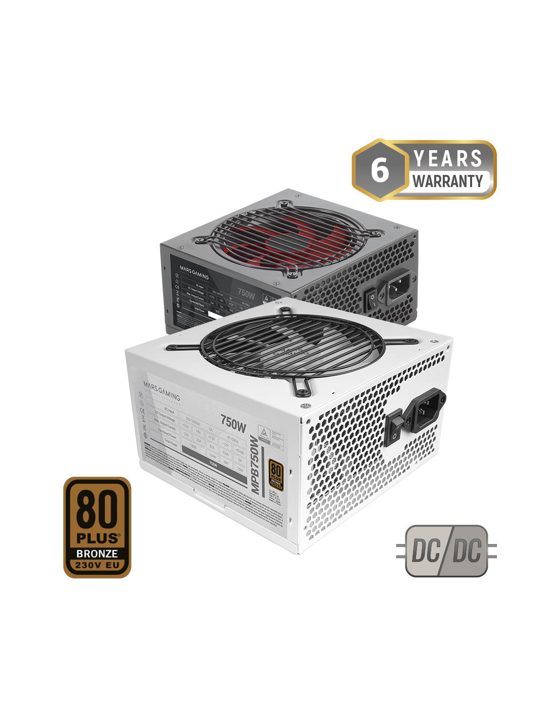 750W ATX DC-DC-Netzteil, mit 80Plus Bronze 230V EU Zertifikat und 6 Jahren Garantie dank der neuesten SMD-Herstellungstechnologie. Außergewöhnliche Leistung bei ultraleisem Betrieb durch die AI-RPM-Technologie, die den Betrieb des 120mm FDB-Lüfters regelt. 99% DIGITAL APFC Effizienz, 90% elektrische Effizienz, extra lange flache schwarze Kabel und integrierte Schutz- und Sicherheitssysteme.