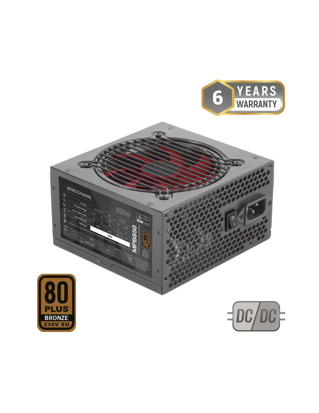 850W ATX DC-DC Netzteil, mit 80Plus Bronze 230V EU Zertifikat und 6 Jahren Garantie dank der neuesten SMD-Fertigungstechnologie. Außergewöhnliche Leistung mit ultrasilent Betrieb durch die AI-RPM Technologie, die den Betrieb des 120mm FDB Lüfters regelt. 99% DIGITAL APFC Effizienz, 90% elektrische Effizienz, extra lange flache schwarze Kabel und integrierte Schutz- und Sicherheitssysteme.