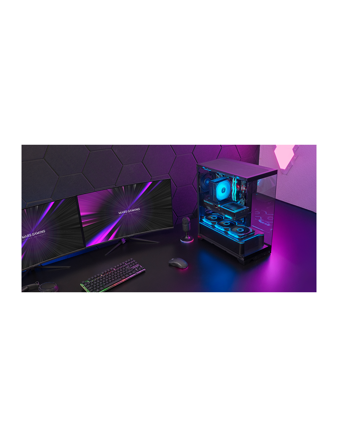 Discover the MC-PRISMA, the first ATX gaming box from Mars Gaming with real immersive vision thanks to its three continuous tempered glass panoramic panels. A unique design that combines cutting-edge aesthetics with advanced functionality, designed for those who seek to stand out in both performance and style. Its versatility and power make it the perfect base for creators, gamers, and enthusiasts looking to build an unforgettable setup.