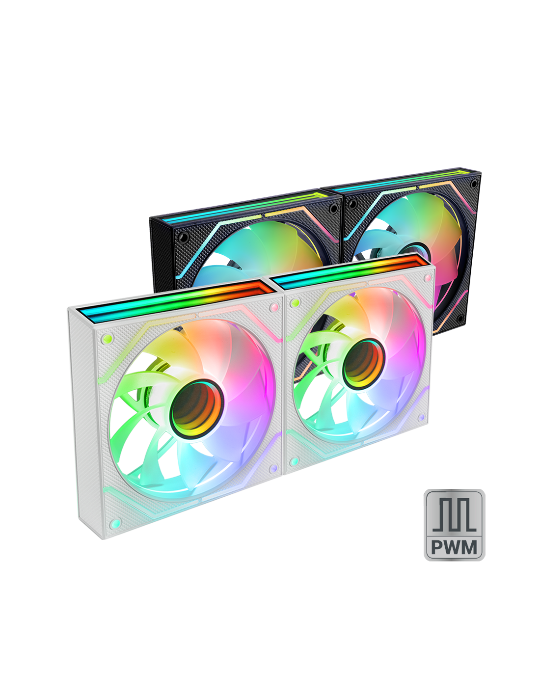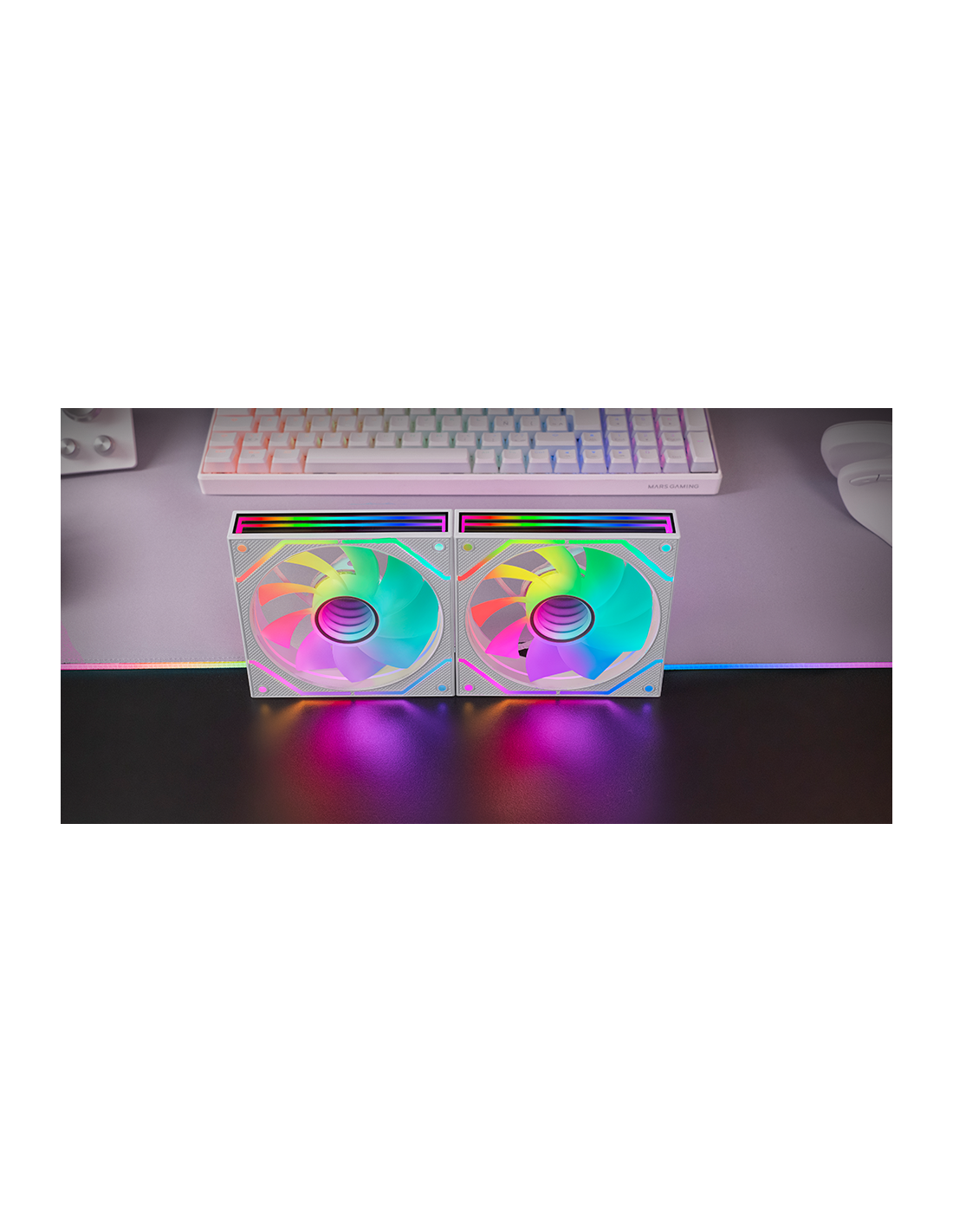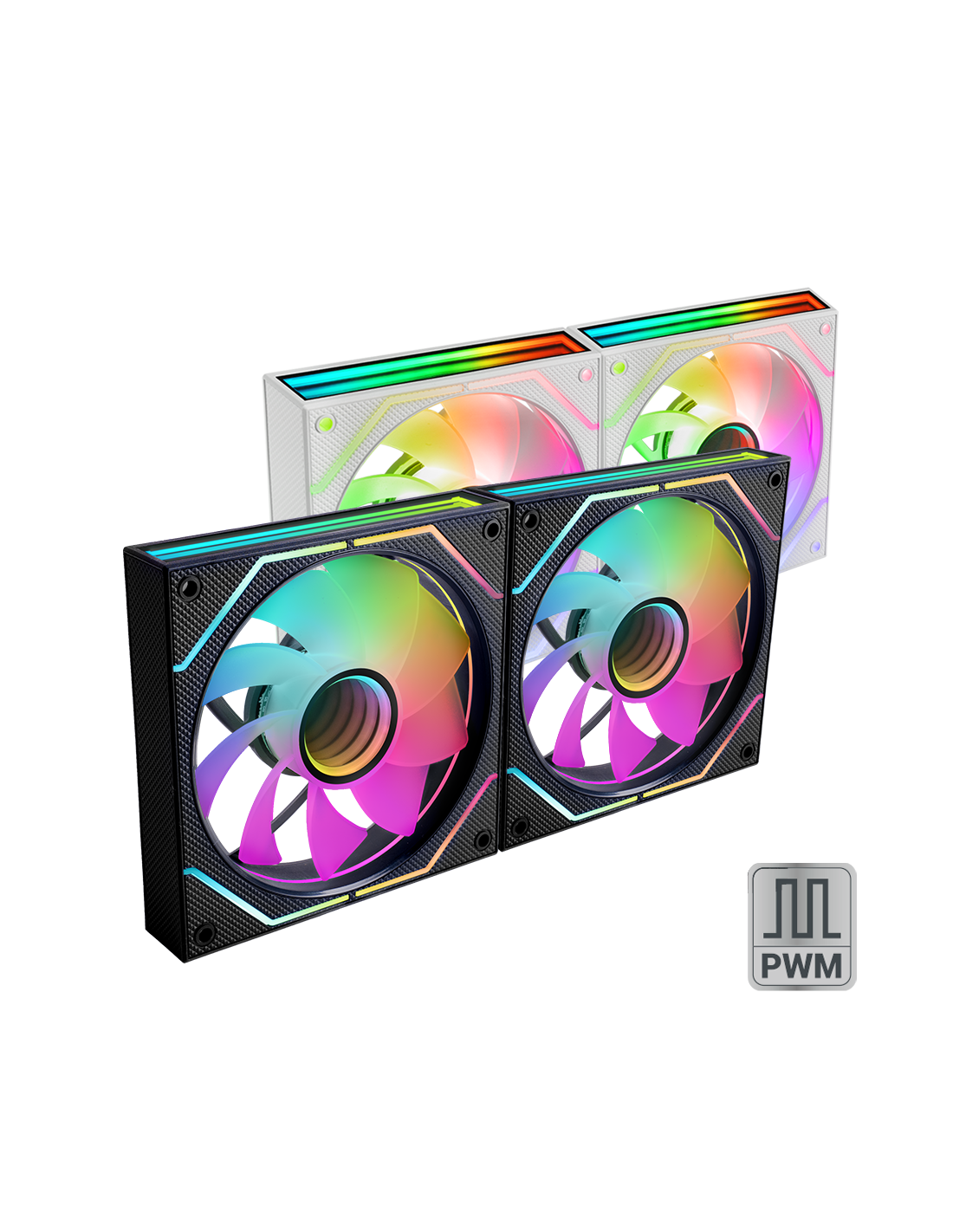 The MF-3DProx2R is a 2nd1 fan kit with reverse blade design or inverted blades, which combines high thermal performance with an envelope ArgB aesthetic. Equipped with two 120mm fans with FDB bearings and PWM control, it offers a silent and stable cooling. Its design with Triple ArgB frame effect Infinity Mirror transforms any setup into a 360º visual show.