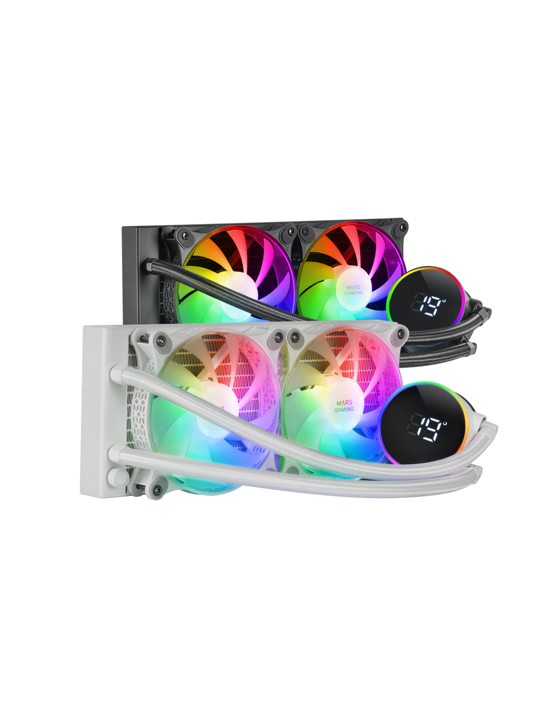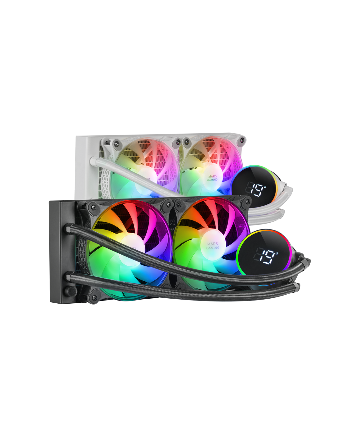 The AIO ML-LCD240 liquid cooling system combines efficiency and style. Equipped with two 120 mm FDB fans with ARGB lighting, it offers a higher heat dissipation, keeping the CPU fresh even low intense loads. It incorporates the Opti-Chamber 3RD gene technology and a low resistance radiator for optimum performance and up to 500W TDP, Extra-Last Teflon Tubes and Universal Multisocket Compatibility. Your LCD ArgB screen on the pump allows to monitor the cooling liquid temperature in real time.