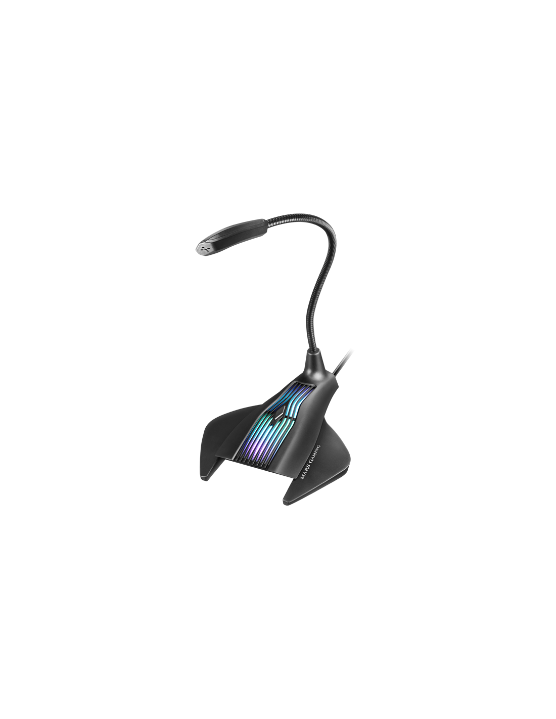 MARS GAMING MMIC combines the advantages of the Omnidirectional pro microphones with a RGB Flow system that enhances your setup look of best possible way: Design Plug & Play, Flexible and Adaptable Arm, Mute Button and Structure Perfect to capture your voice from the desk without the need for headphones. Discover the best way to retransmit your online videos or communicate easily with a professional quality