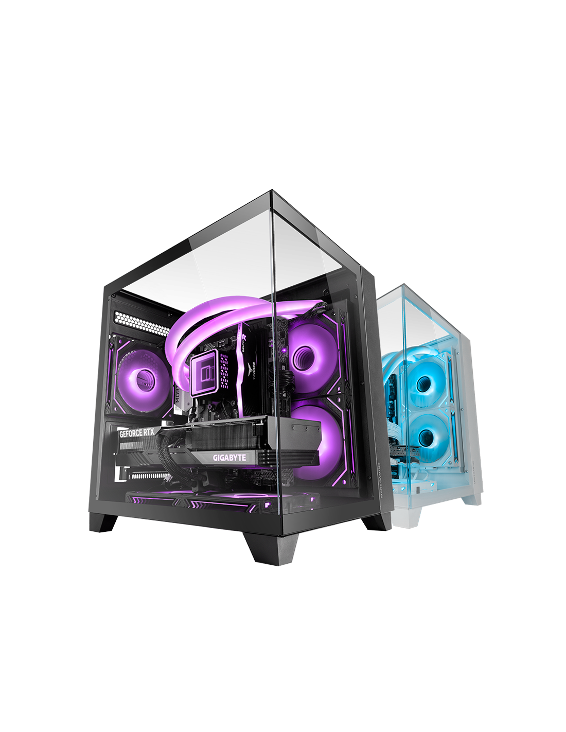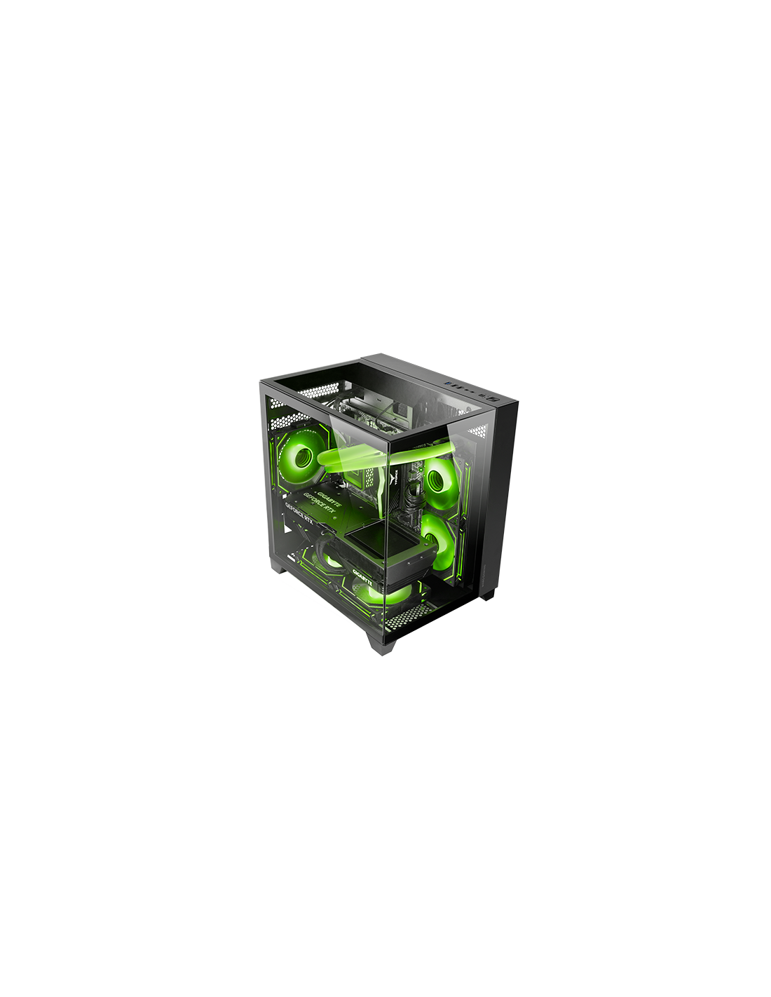 The MC-3CM box combines a design and performance. Your 3D panoramic view with triple, lateral and tempered glass front window shows not only shows the inside of your setup, but also offers a modern and elegant touch. With support for liquid cooling up to 240mm and up to 5 fans of 120 mm, it has a double side camera design and an efficient wiring management that guarantees a clean and orderly interior, optimizing the air flow and aesthetics of your PC.
