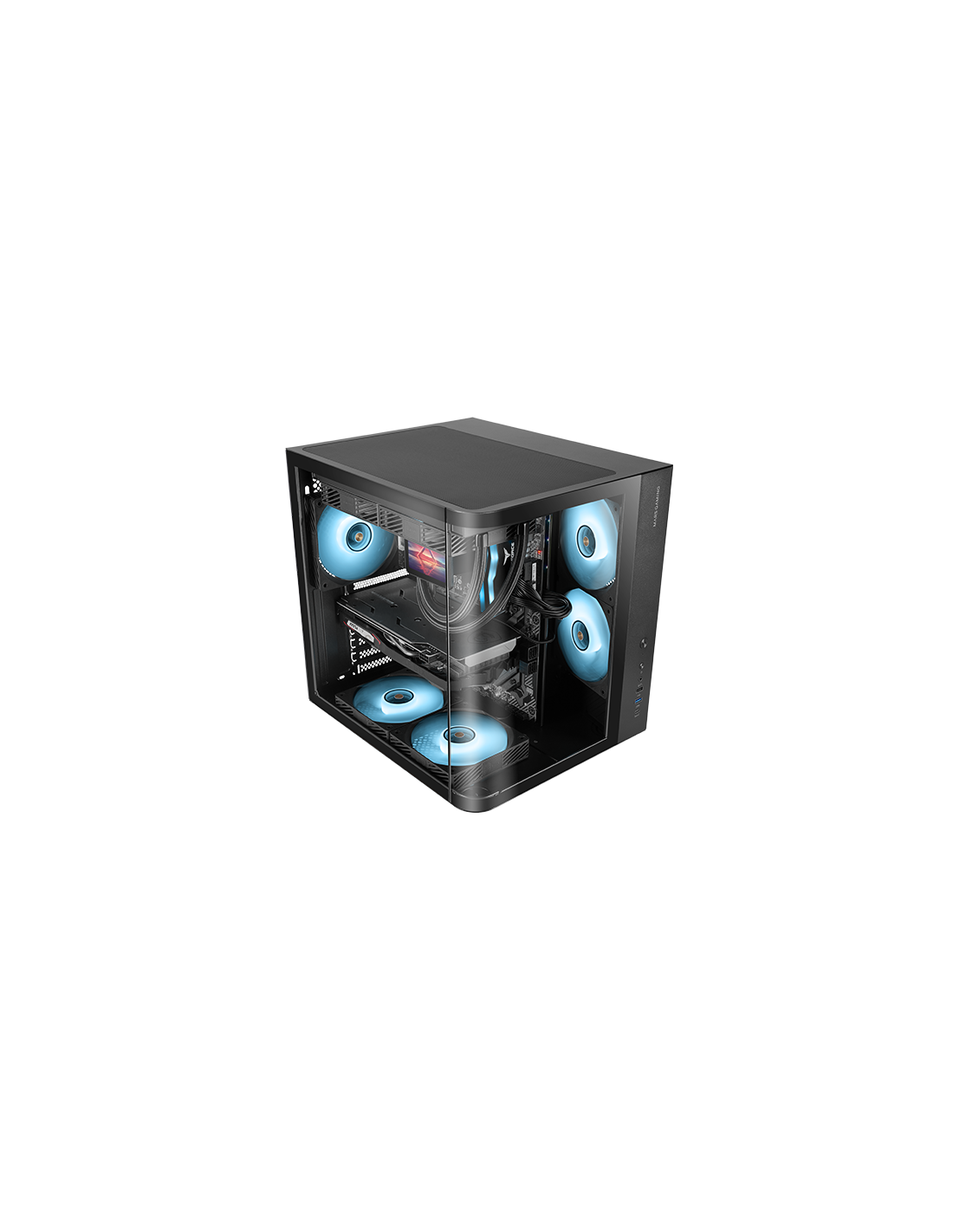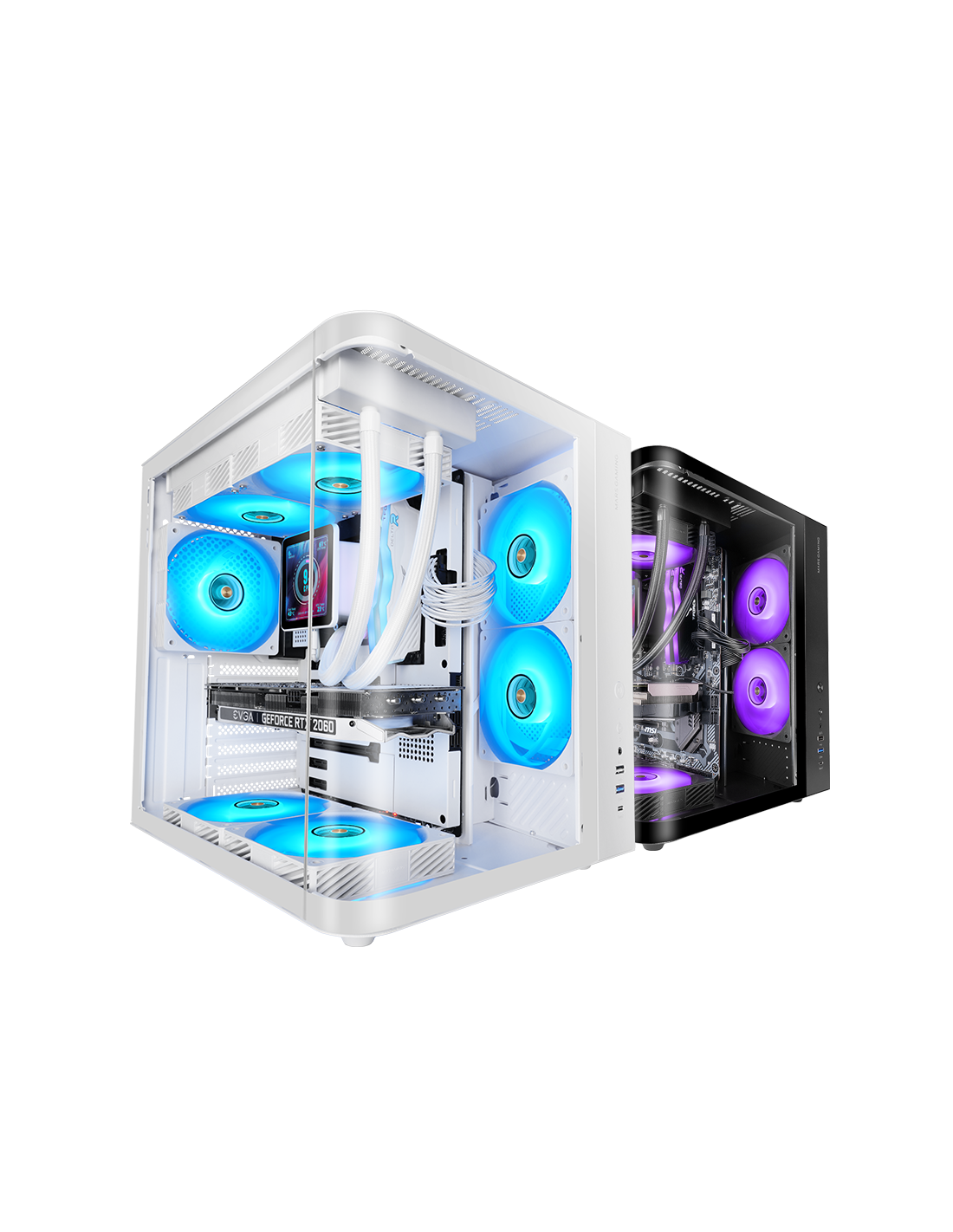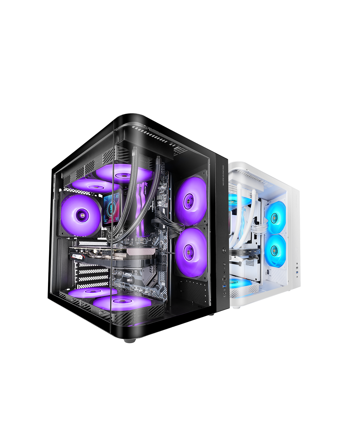 With a format that combines power, aesthetics and functionality, the ATX MC-Curv box stands out for its enveloping design and its advanced thermal performance. Its double continuous curved temperate glass panel offers a clean and futuristic panoramic view of the interior, ideal to highlight your hardware to the fullest. Equipped with double-camera structure for more efficient cooling, advanced connectivity with USB-C and USB 3.0 ports, and compatibility with liquid refrigerations up to 240mm, is designed for modern compact setups that require style and performance in each Detail