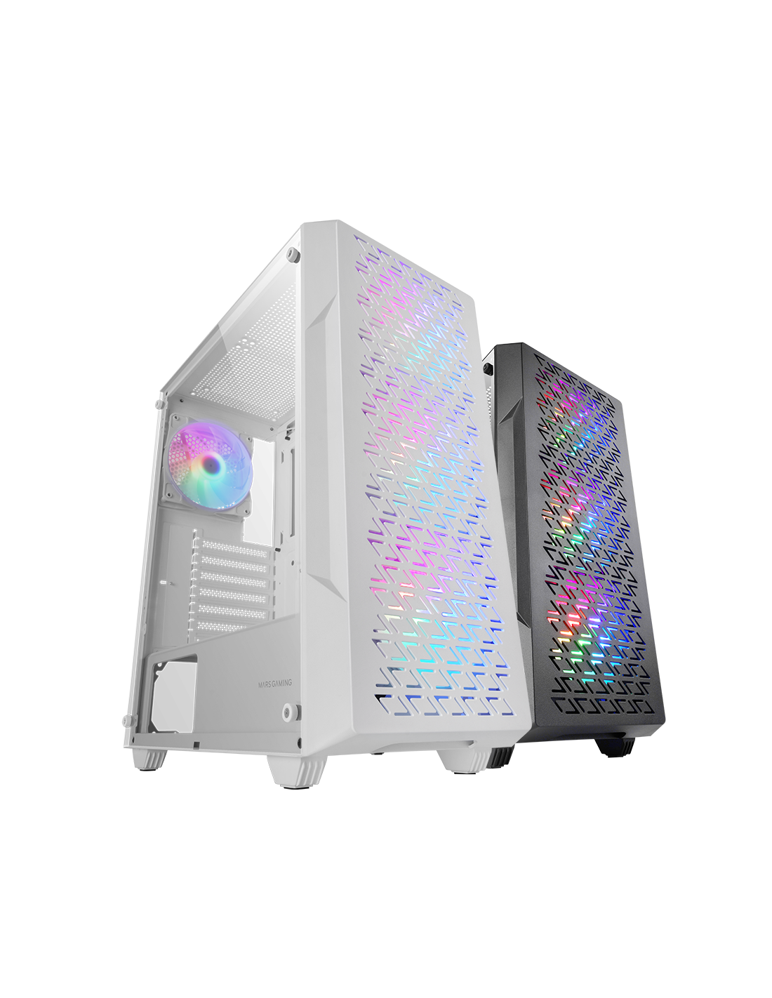 With Geometric Mesh Front Panel, 4 FRGB Rainbow Fans of 120mm Series, Tempered Glass Side Window, Up To 360mm Cooling Support and Dual Camera Design, Mc-Geo Furniture Power and style in an ATX tower designed to maximize refrigeration and performance.