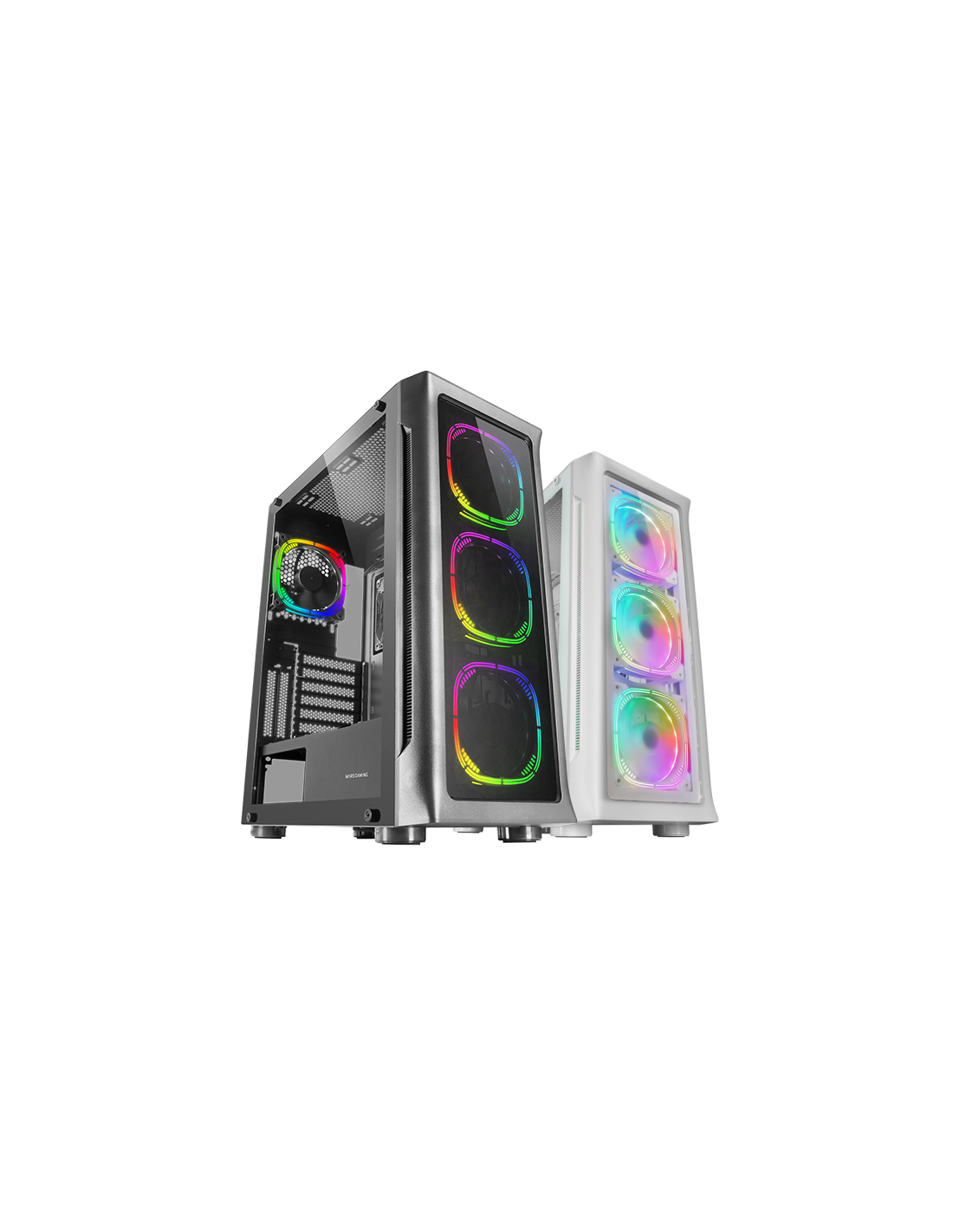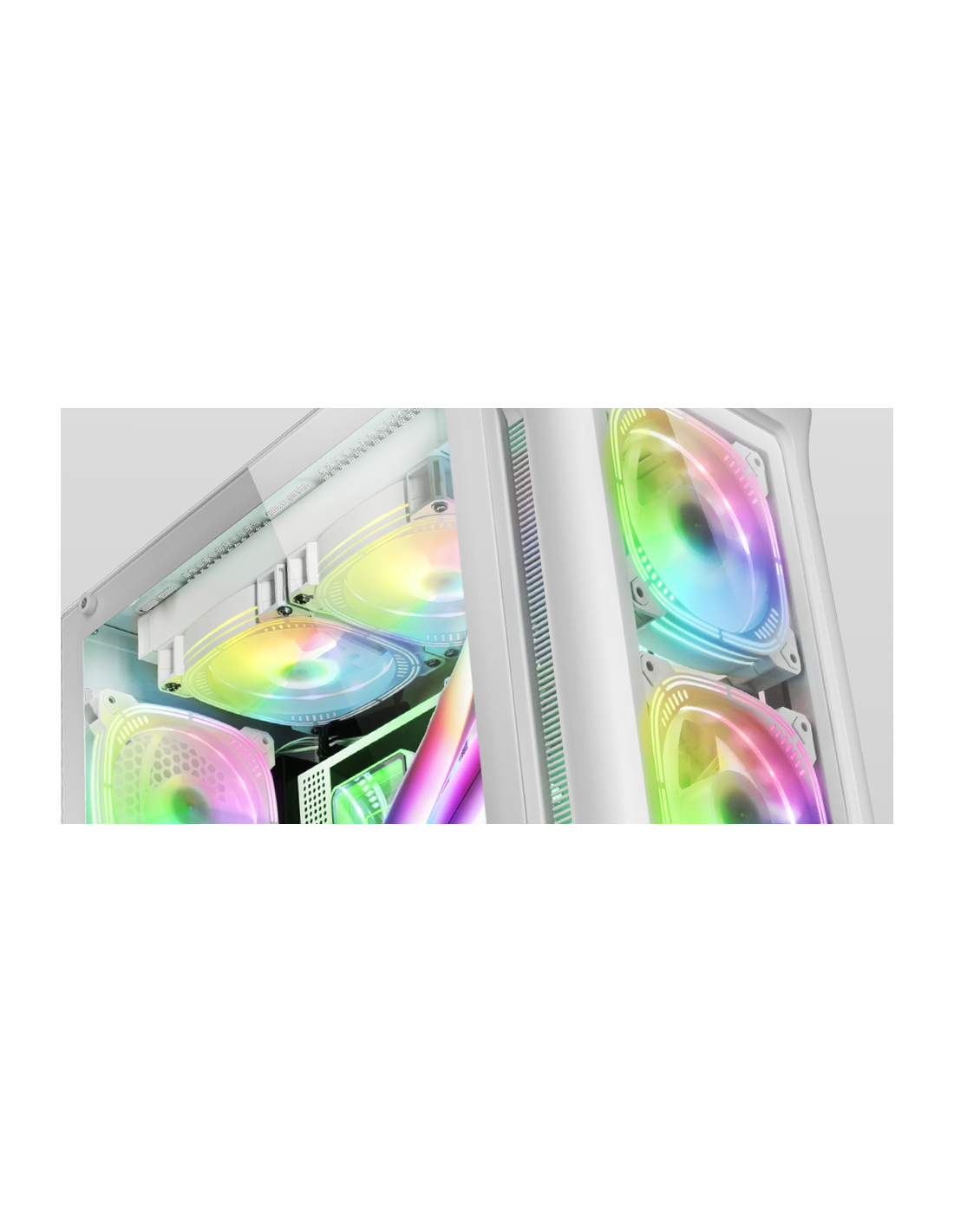 Exclusive CPU Freezer refrigeration system. 4 ArgB fans and a lateral fan for ultra-silent CPU. XXL E-ATX structure with vertical VGA bays, side and front window in tempered glass, support for up to 9 fans of 120mm or 5 140mm fans and liquid support of up to 360 and 280mm.