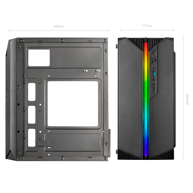 Front lighting ArgB with 12 spectacular modes and a rear FRGB fan included. Micro-ATX compact size with liquid space up to 120mm *