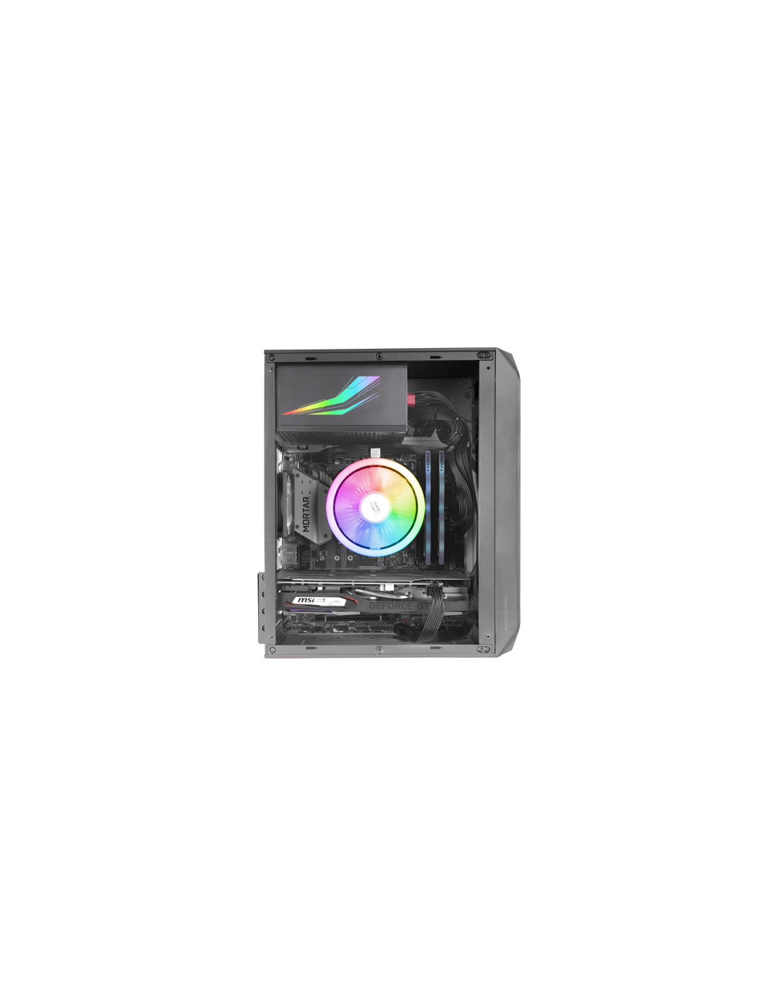 Gaming compact box with an outstanding refrigeration thanks to its 2 FRGB fans, its front panel with grid design and support for liquid refrigerations up to 240mm *
