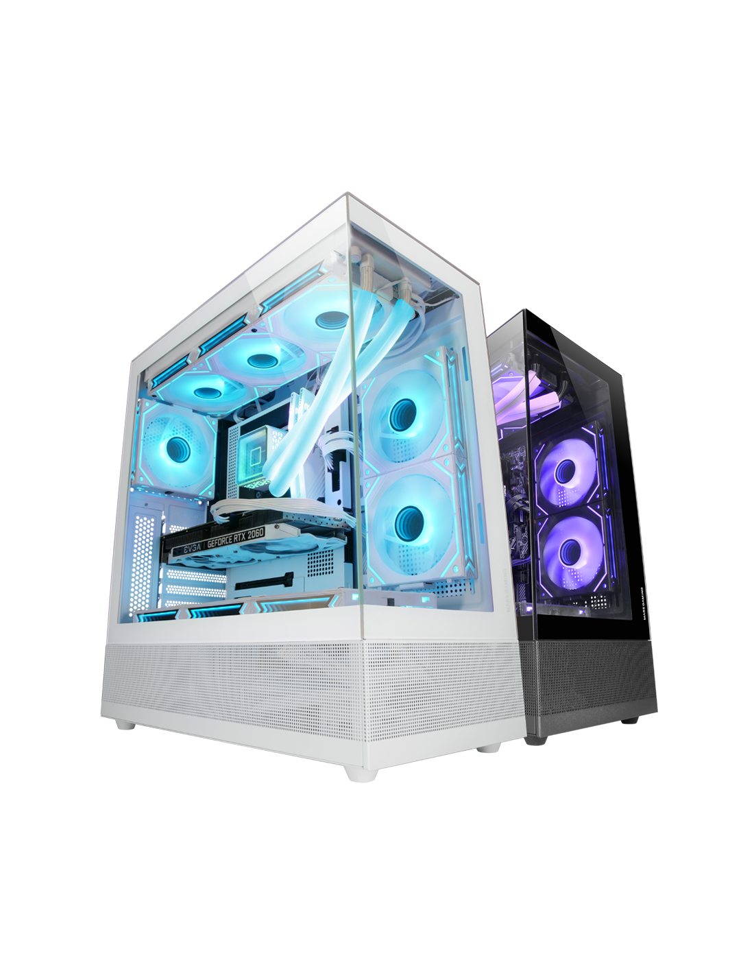 The Gaming MC-Set semitted box redefines your play space with an innovative and advanced design. Its two removable tempered tempered glass continuous panels offer a panoramic view and robust protection for your components. Designed for ATX base plates, the MC-Set combines functionality and style for superior performance and sophisticated aesthetics. Thanks to the Airtech Mesh technology and the Double Camera design, it offers exceptional cooling, optimizing the air flow and keeping your components at the optimum temperature.