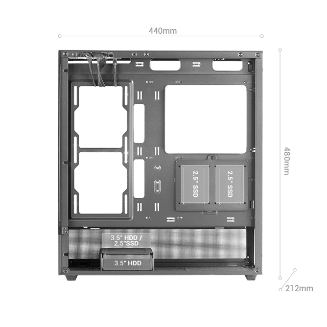- Up to 9x 120mm or 6x 120mm + 2x 140mm