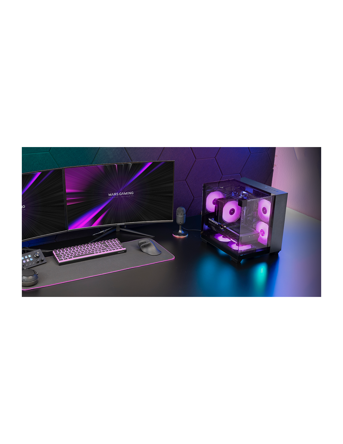 Discover MC-Visionm, a premium gaming mini-direction that redefines aesthetics and performance in compact MicroArtx format. With a continuous tempered tempered triple envelope design, double camera structure and an advanced internal wiring management system, guarantees impeccable and efficient configuration. Its ability to install liquid cooling systems of up to 240mm, 5 120mm fans and graphic card space up to 330mm, make it the final option for compact setups without giving up power and customization.