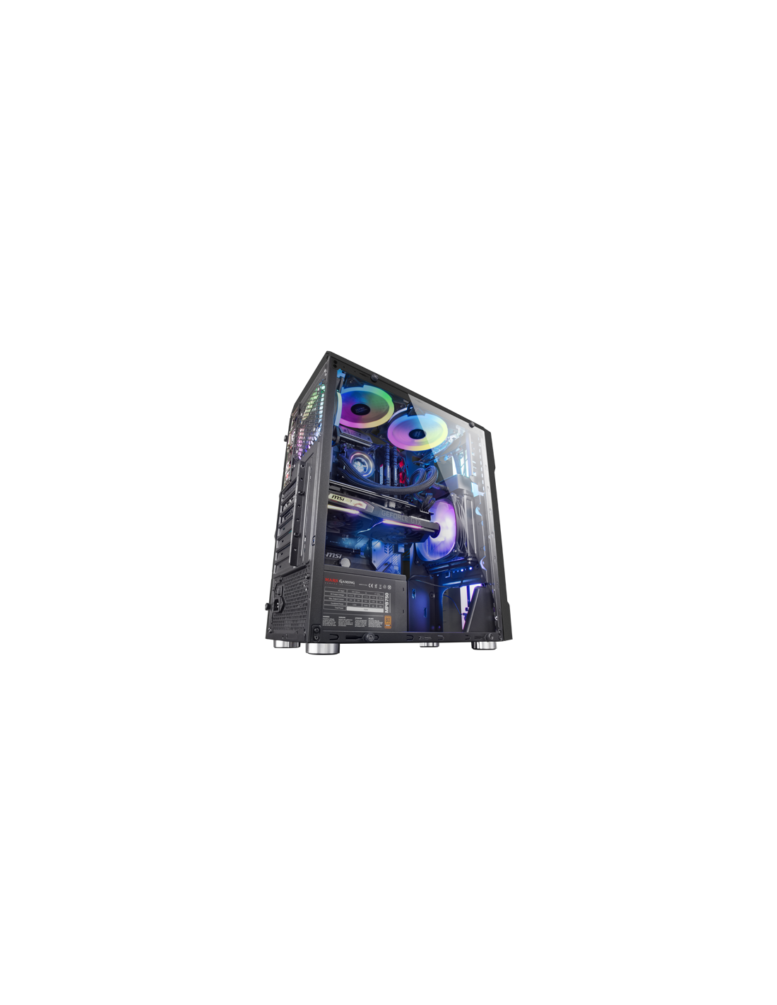 Designed with a spectacular front with triple LED RGB synchronized with a Ring fan of 12cm, the MCK is a high-performance semiter prepared to offer you everything you need to mount your new setup. High quality materials, tempered glass panel and an optimized structure: the best combination for your Gaming box.