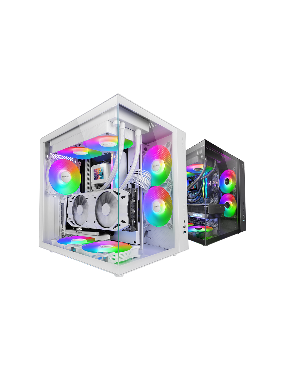The MCV-One is a compact ATX box with a wide internal capacity that combines avant-garde design, high thermal performance and a premium aesthetic to bring your setup to the next level. With its double continuous tempered glass panel, integrated 120mm FRGB fan, double-chamber structure and liquid refrigeration compatibility of up to 240mm, it offers everything necessary to mount a powerful and impressive equipment in a compact format.