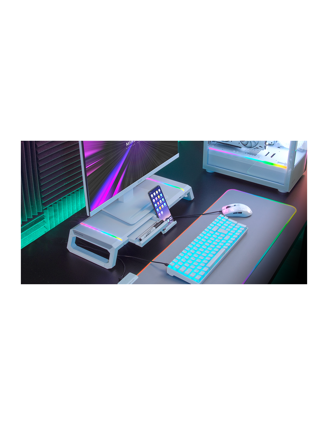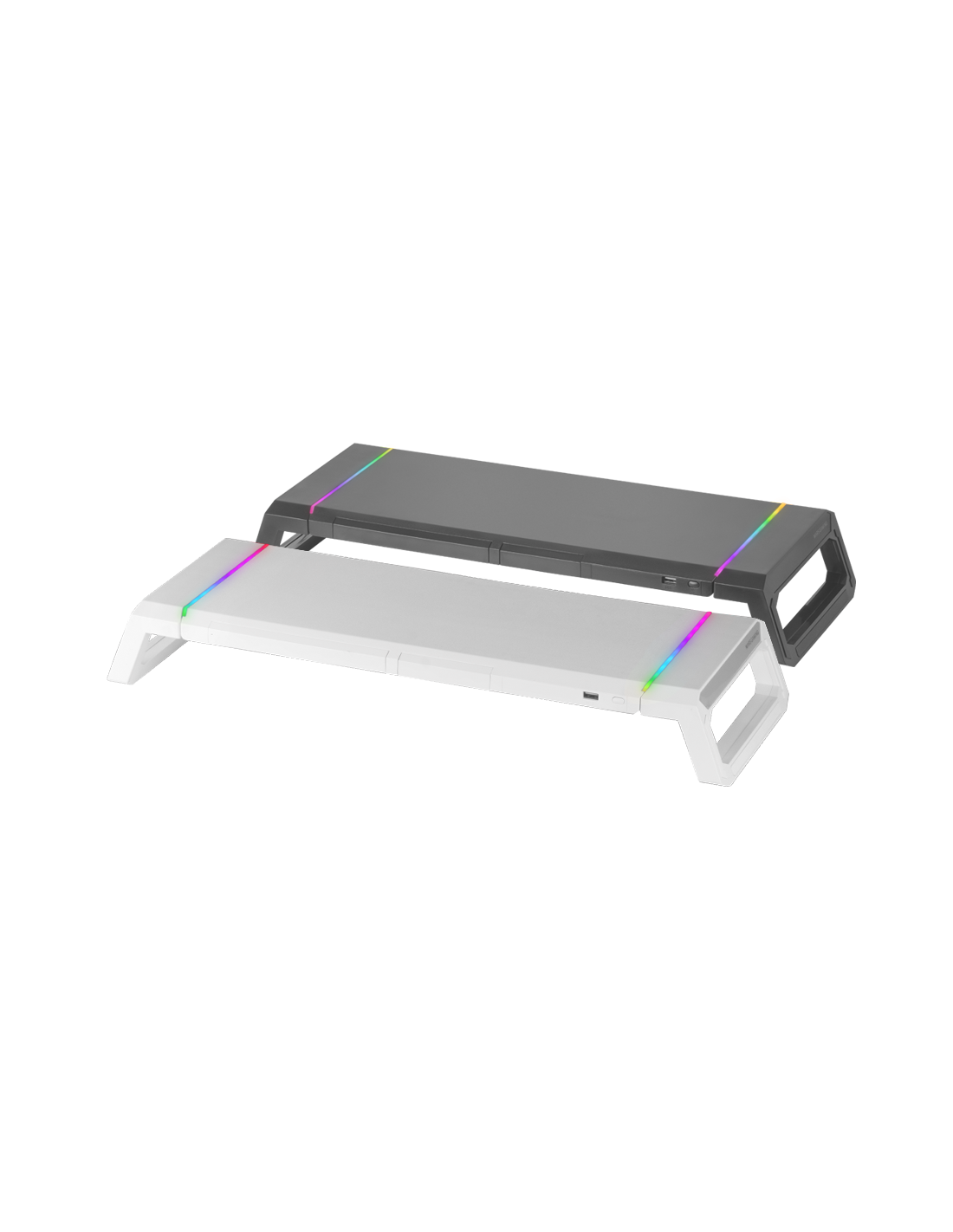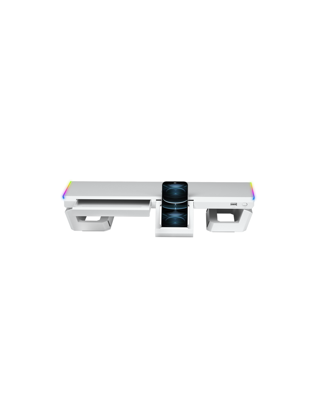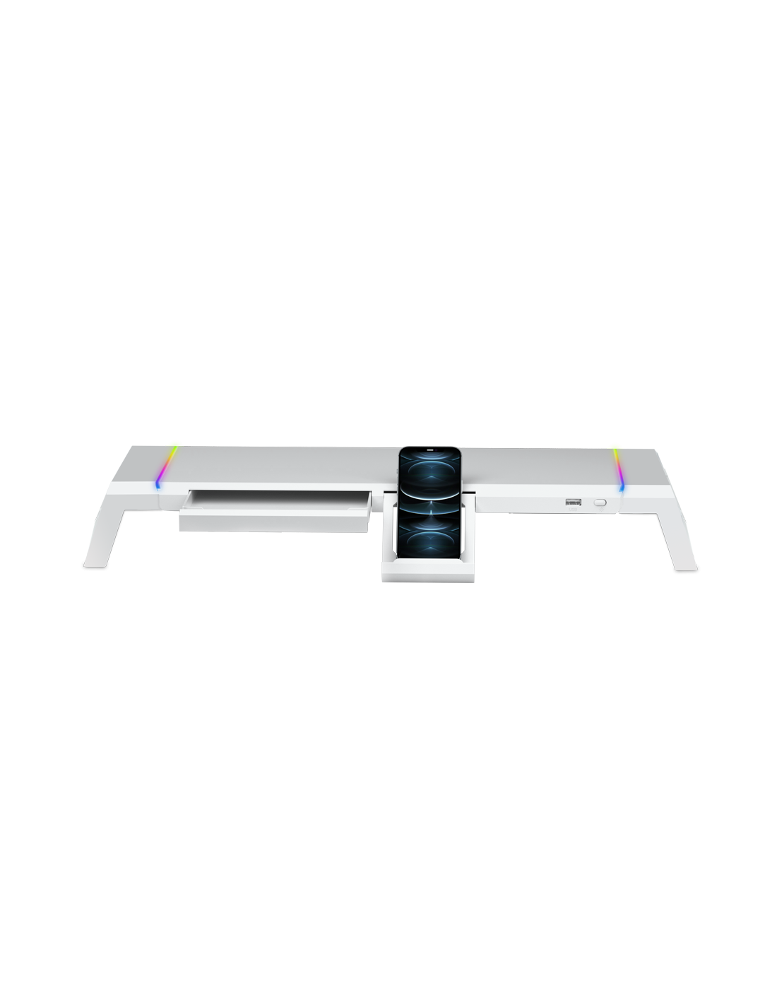 Premium support for monitor with advanced lighting Chroma RGB, USB 2.0 port, mobile support / tablets and drawer for storage. Totally adjustable with 3 different sizes thanks to its folding sides.