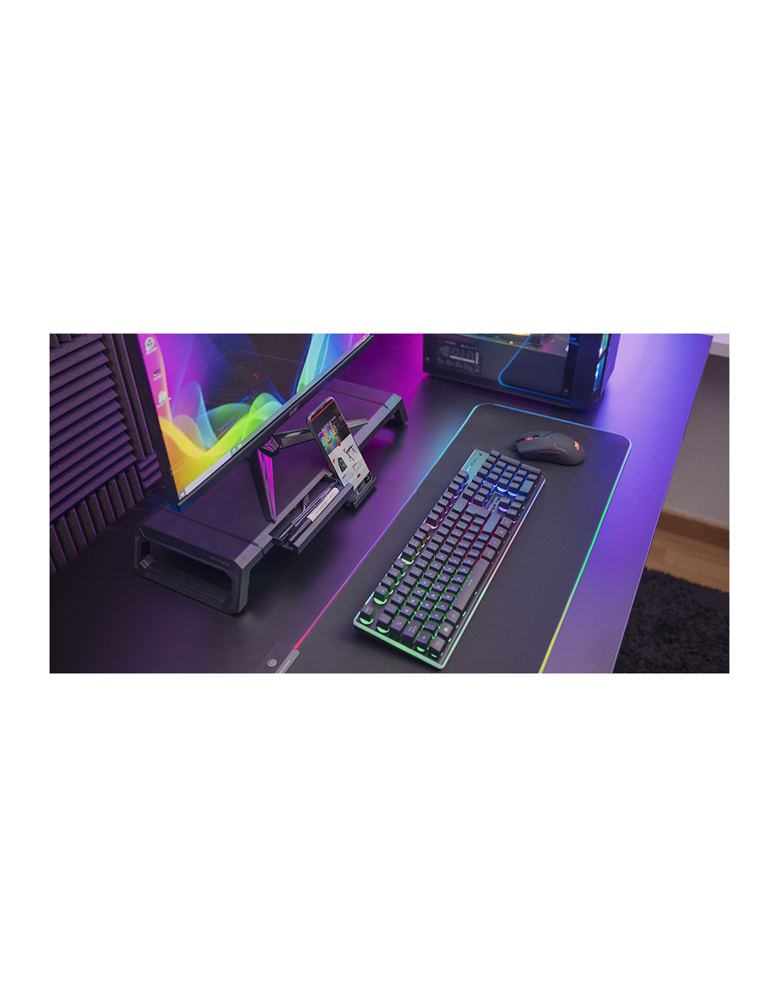 Support for MGS-Pro monitor, designed to optimize your space and ergonomics. Equipped with an intelligent stand for Smartphone / Tablet and a storage drawer. Totally adjustable in 3 sizes. Discover the perfect combination between functionality and design in every detail.