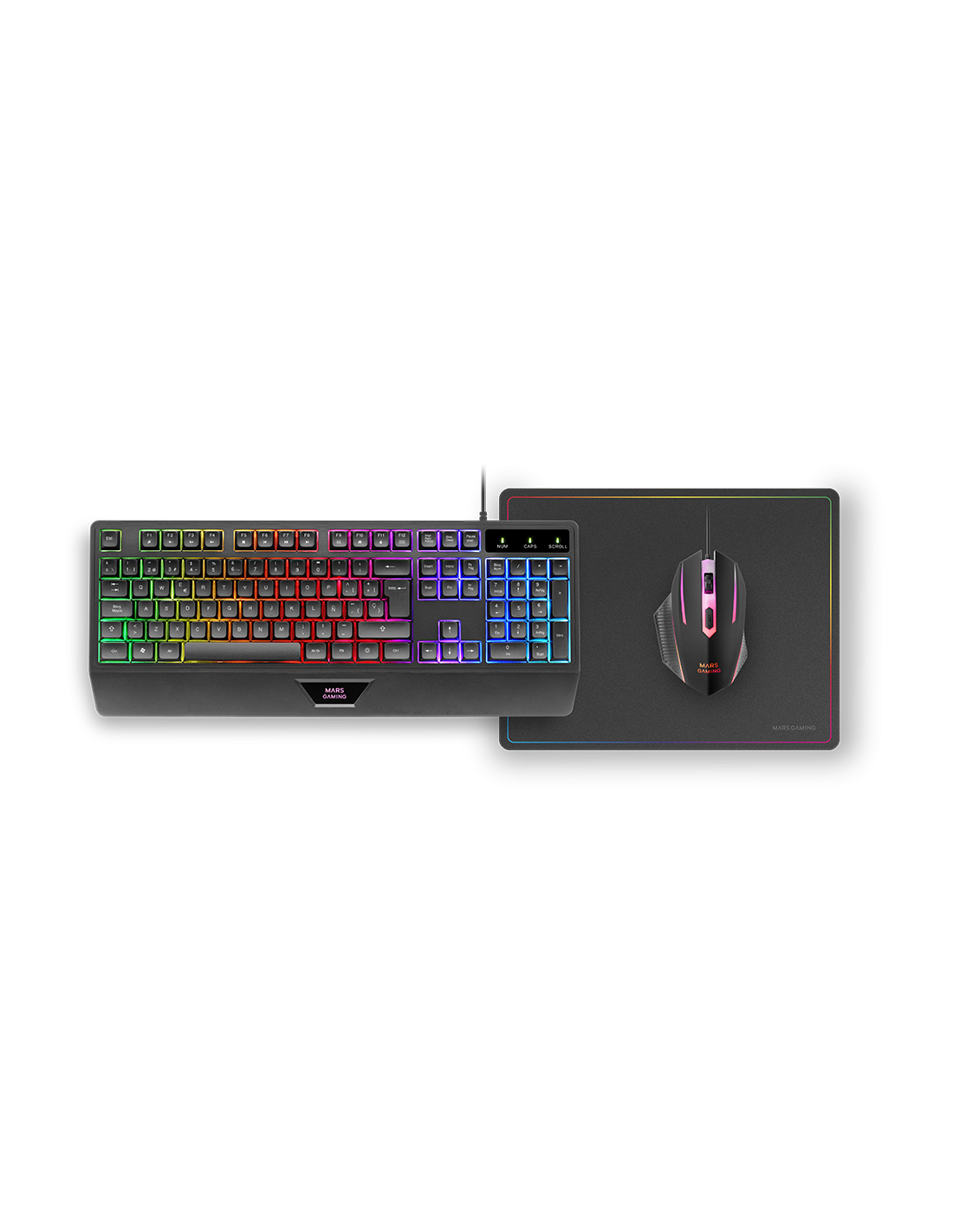 The Gaming 3N1 MCP124 Combo is the final choice for Gamers looking for the ideal combination between performance and style. Includes an ergonomic H-Mech keyboard, an RGB mouse with huano switches and total precision, and a nanotextile carpet with Rainbow design. Compatible with a wide range of platforms, including PC and consoles, the Gaming MCP124 combo allows you to enjoy high performance sessions regardless of where you play.