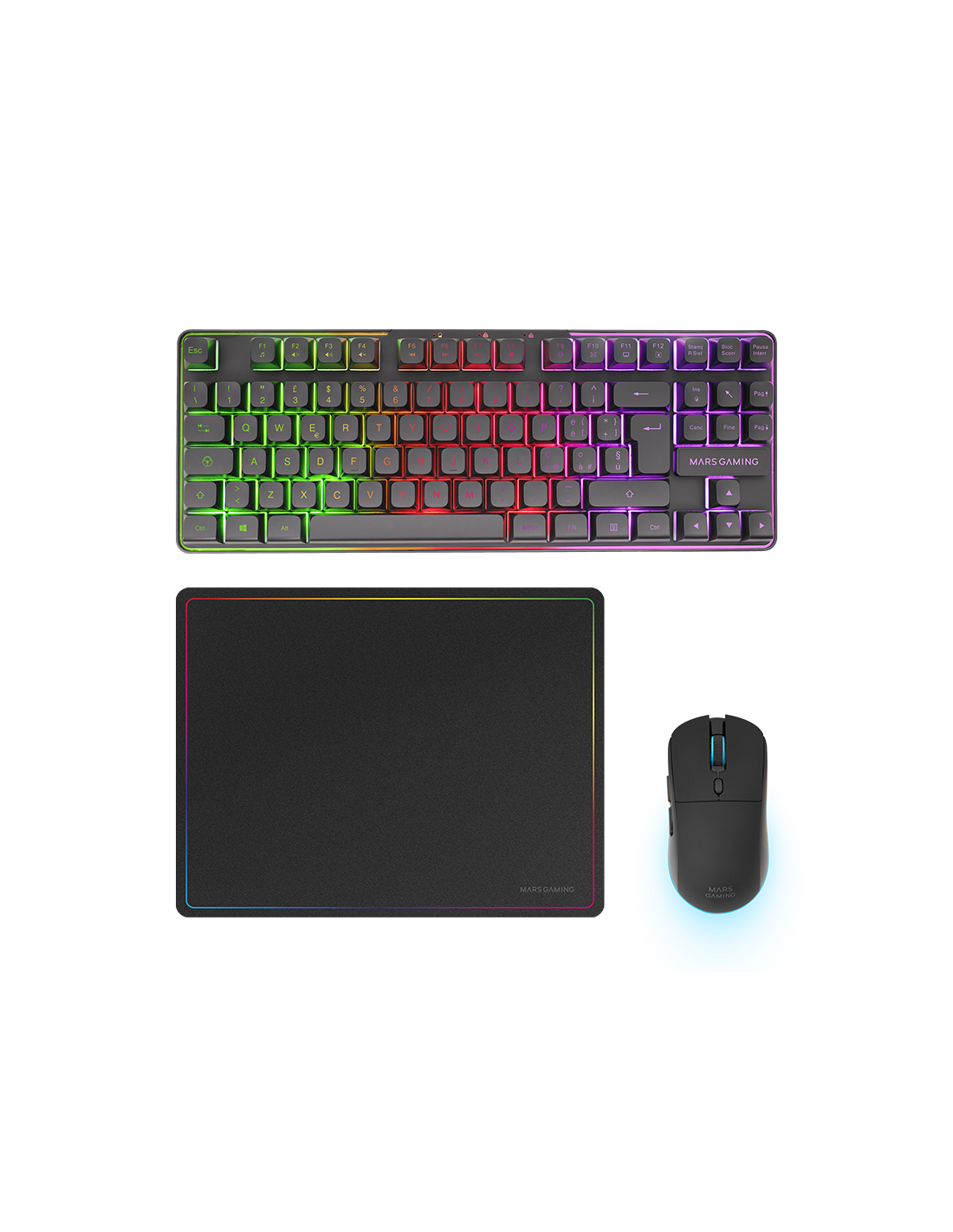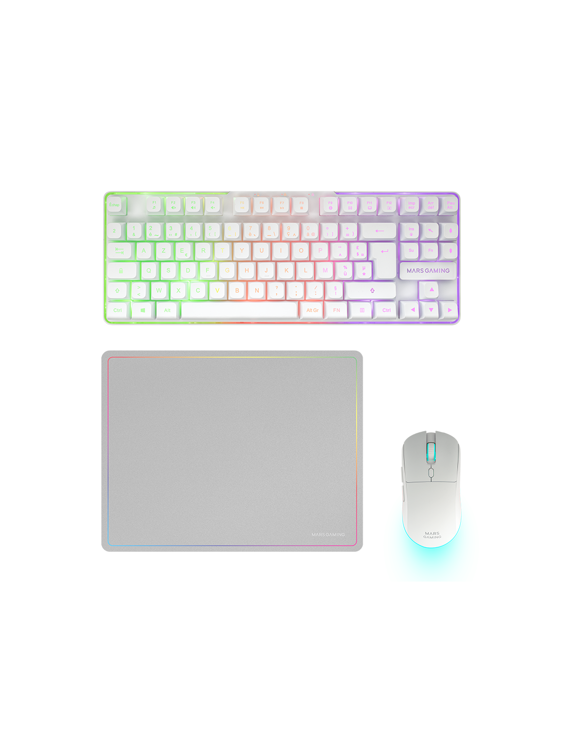 The perfect balance between performance, design and wireless freedom with the gaming mcpwtkl combo, a pack that includes compact keyboard tkl wireless, high precision wireless mouse and optimized surface mat. Equipped with DualPro Link 2.4GPRO technology, each peripheral has its own wireless receiver to offer ultra-stable connection without interference. Perfect for reduced spaces and gamers looking for a wireless experience, without renouncing speed or precision.