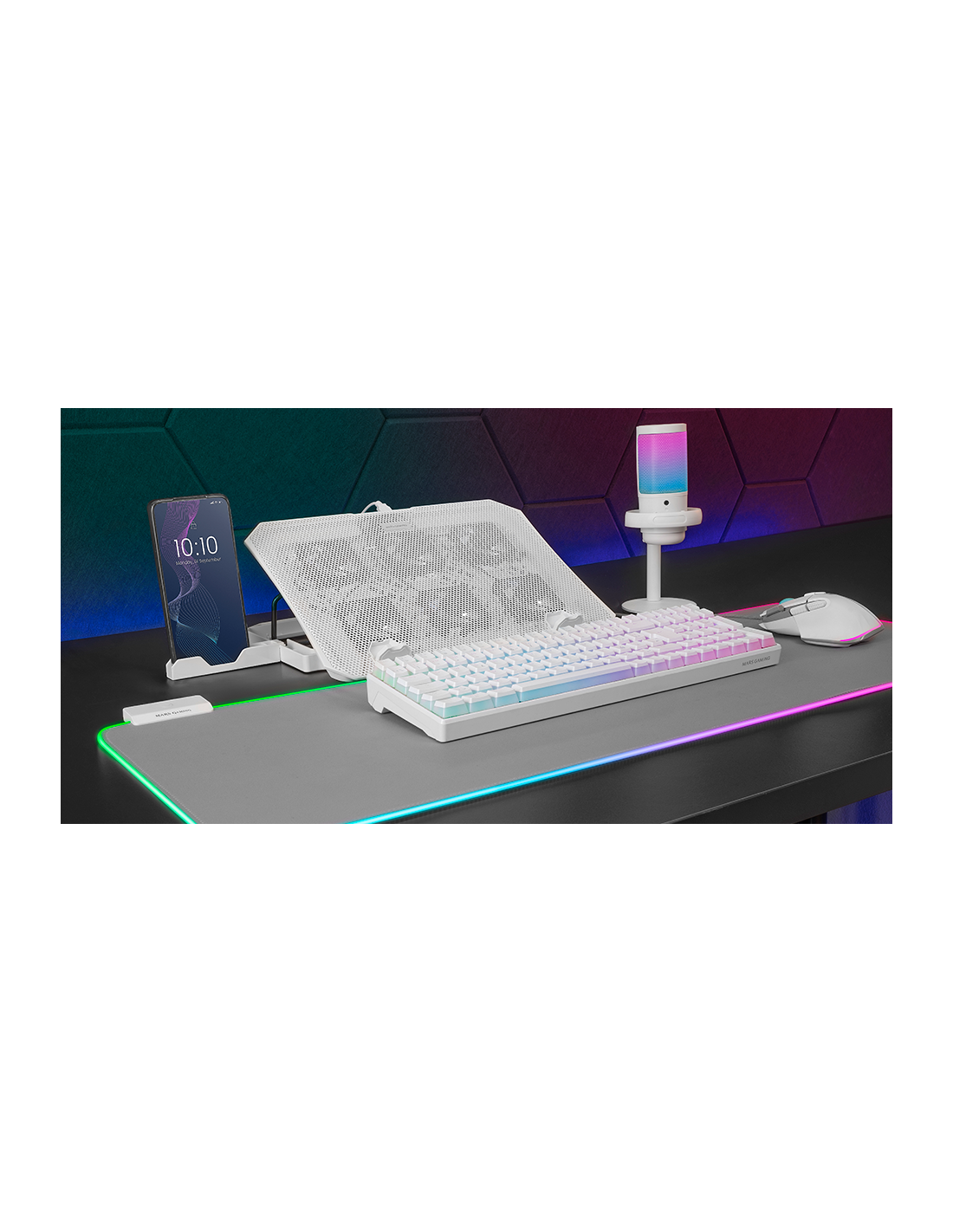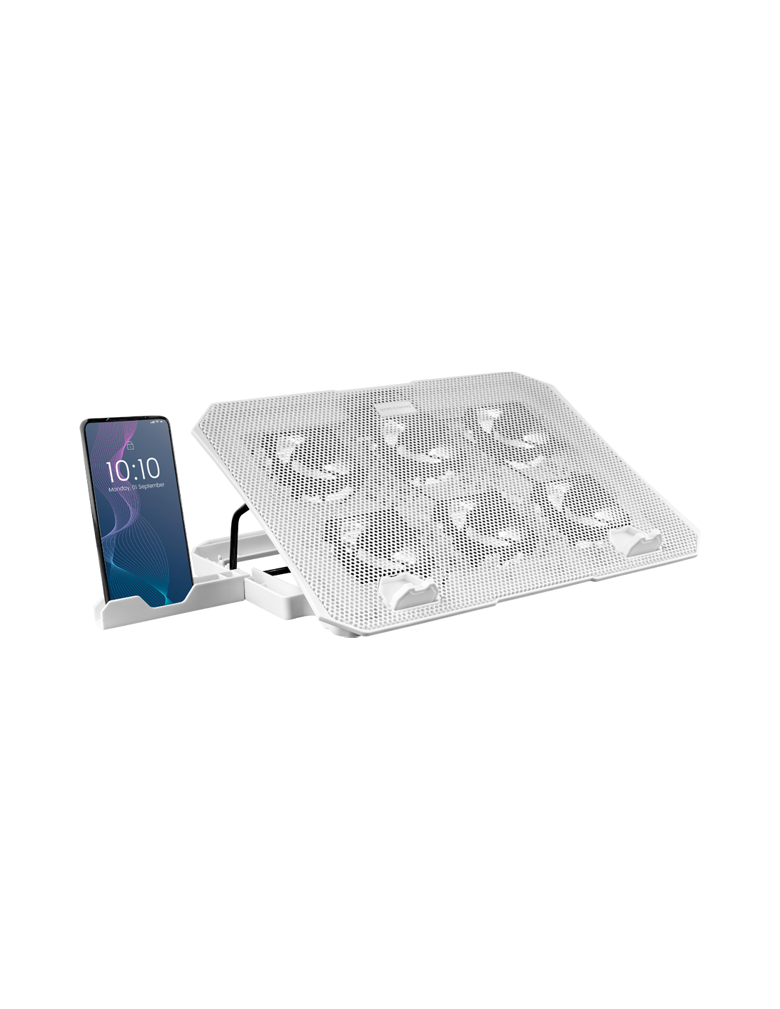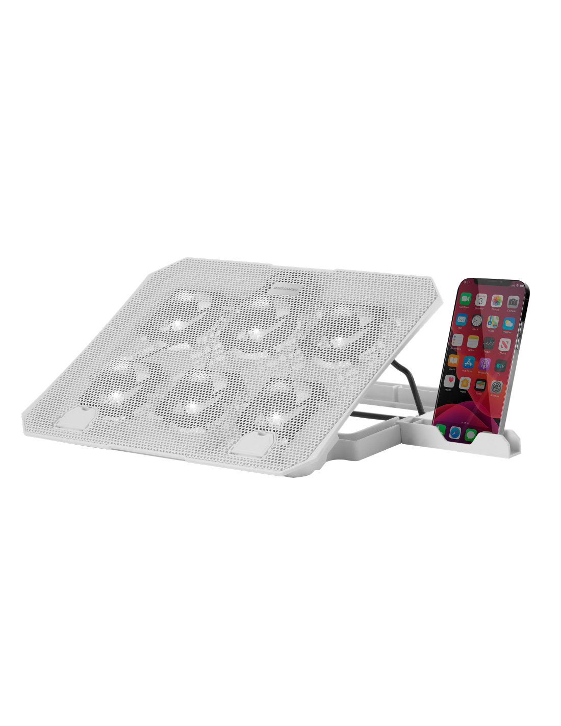 Keep your laptop cool and protected with the Cooling Base MNBC23. Designed with a sturdy steel structure, aluminum grid and ABS housing, with standing feature 6 adjustable positions and smartphone holder, provides a perfect support for up to 16 ". Its 6 fans with blue LED lighting ensure a Powerful and efficient refrigeration, allowing you to enjoy your game sessions or intense work without worrying about overheating.
