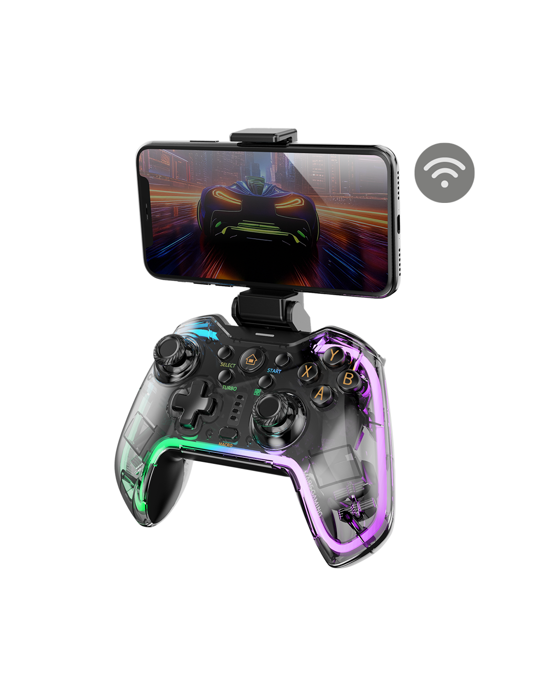 The MGP-BT2 is the definitive Bluetooth gamepad with multiplatform compatibility, optimized ergonomics and Bluetooth 5.0 technology incorporates analog triggers, providing an ideal progressive response for racing and FPS games. In addition, your macro programming system on the rear buttons allows you to customize commands for a competitive advantage. With a removable universal support for smartphones up to 7 ", neon lighting RGB and dual vibration, this command offers an enveloping game experience on any device.