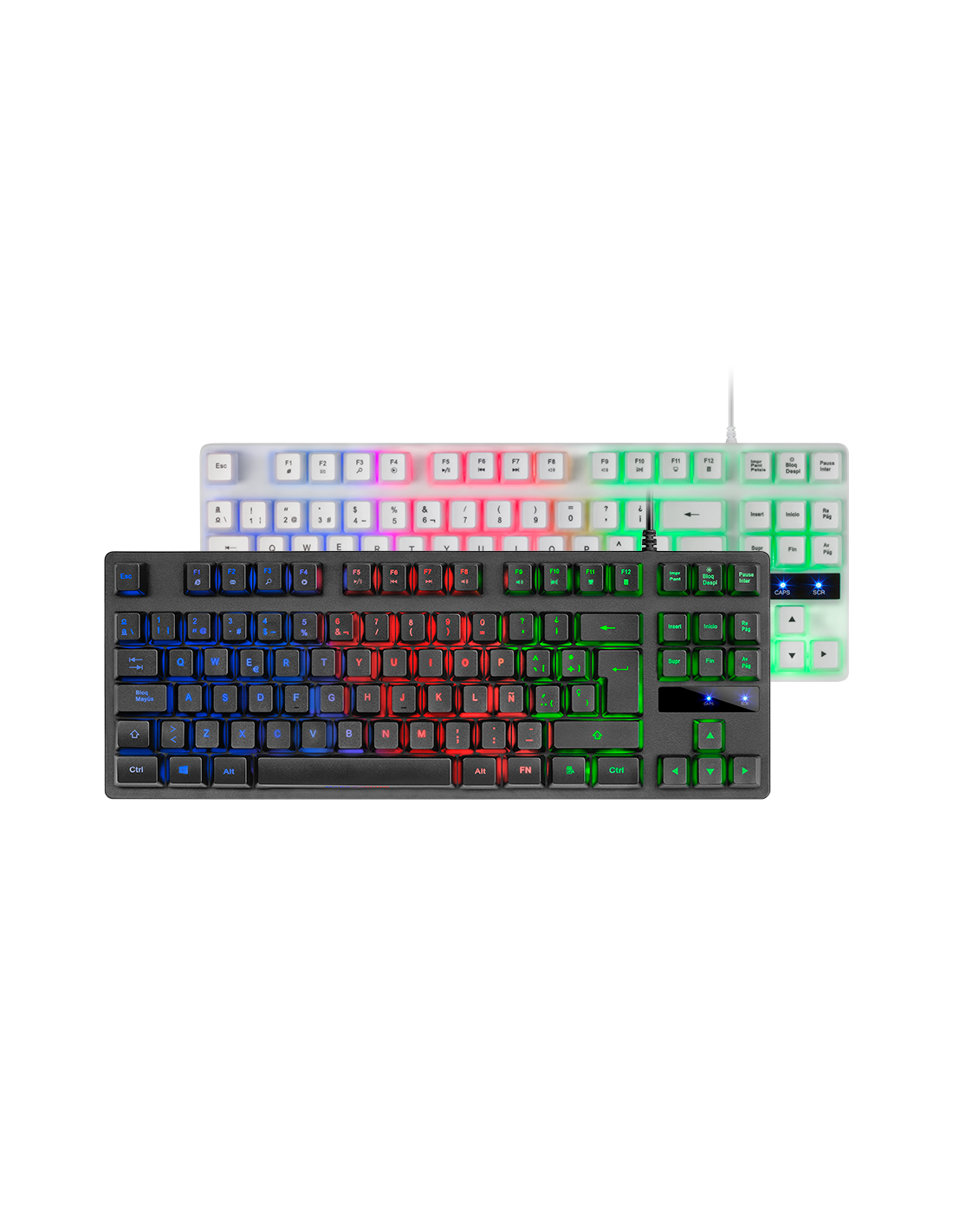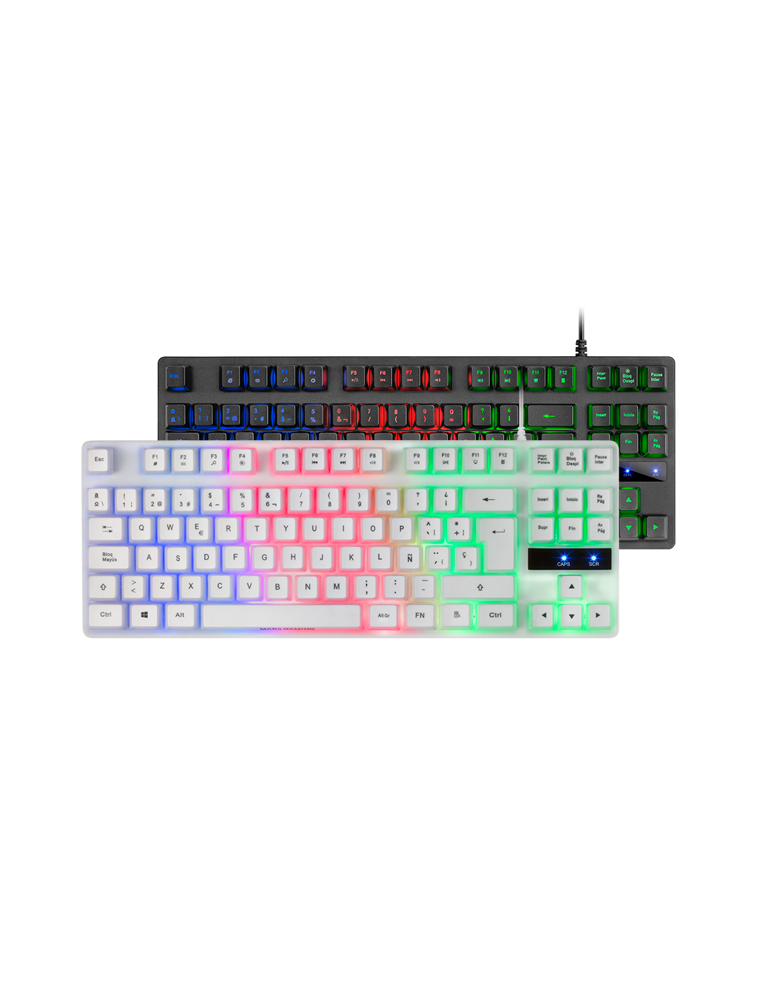 Hybrid H-Mech technology in compact size. The best of mechanical keyboards and membrane keyboards combined. Spectacular Rainbow Frgb lighting and two black / black colors available.