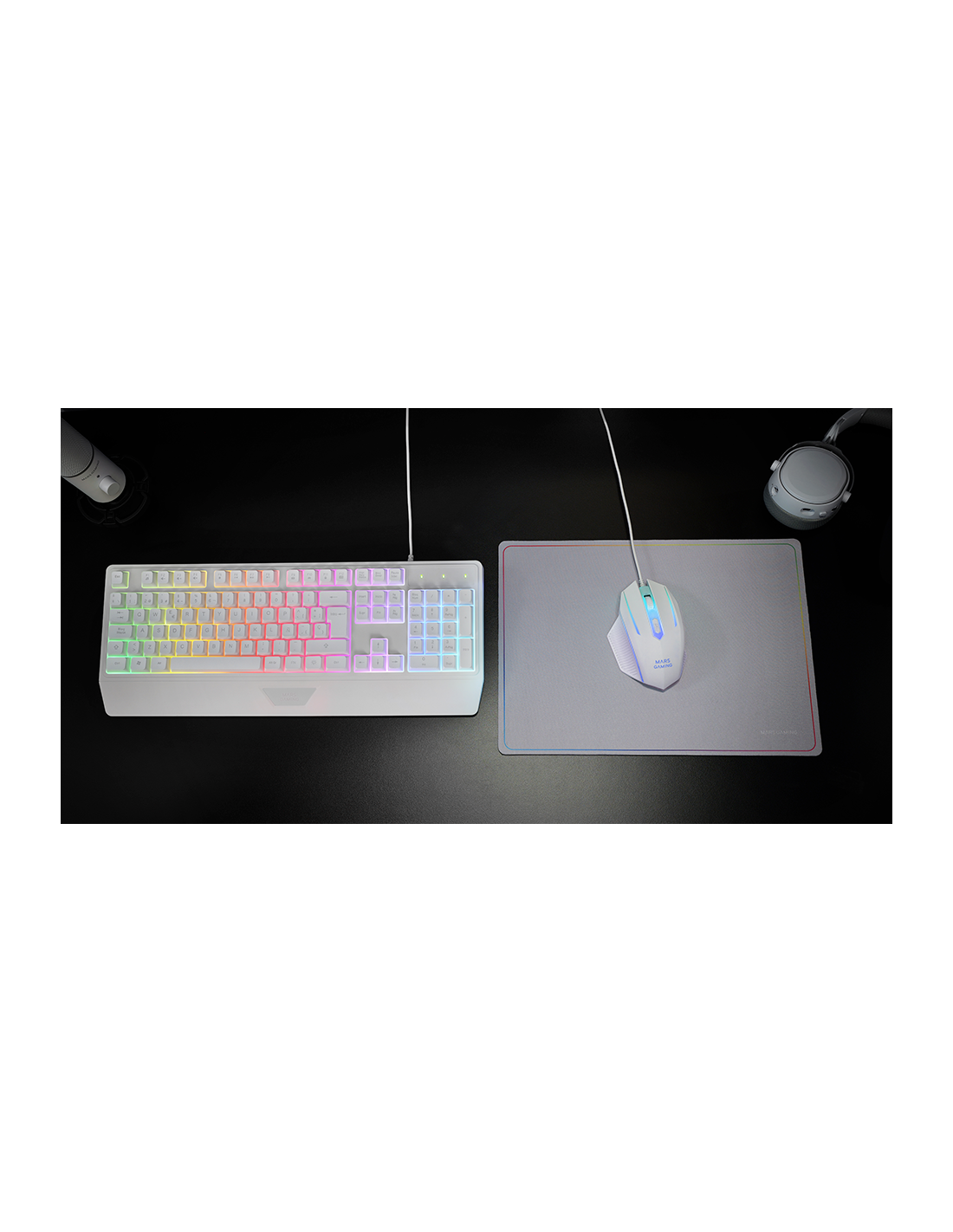 The keyboard MK124 combines mechanical precision with the softness of a membrane keyboard thanks to its H-Mech technology, offering fast and silent pulsations. Its ergonomic design with armrest, lighting FRGB Rainbow and multiplatform compatibility, make it perfect for players of all levels.