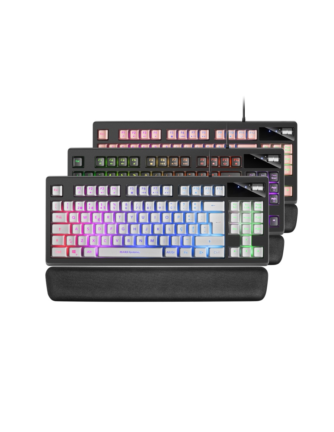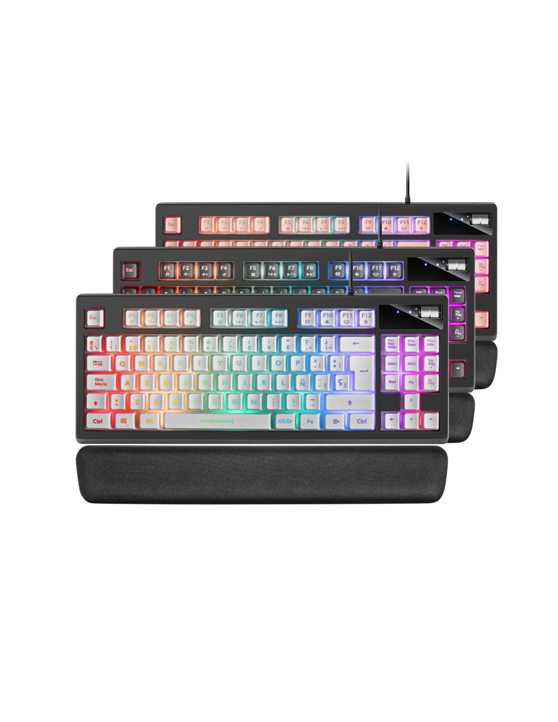 With a quick and comfortable press, a RGB design with multiple effects and Roller button to control the volume in departure, the MKAX is the definitive keyboard for those players looking for the best gaming aesthetic with precise performance for any kind of challenge. High-End features, TKL format and premium retaining ... the best features, in 3 different colors.