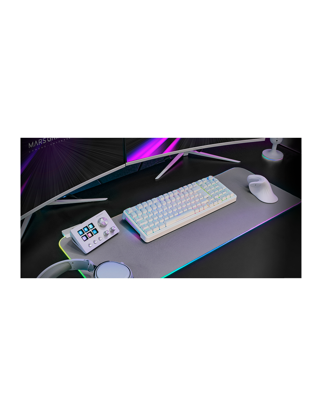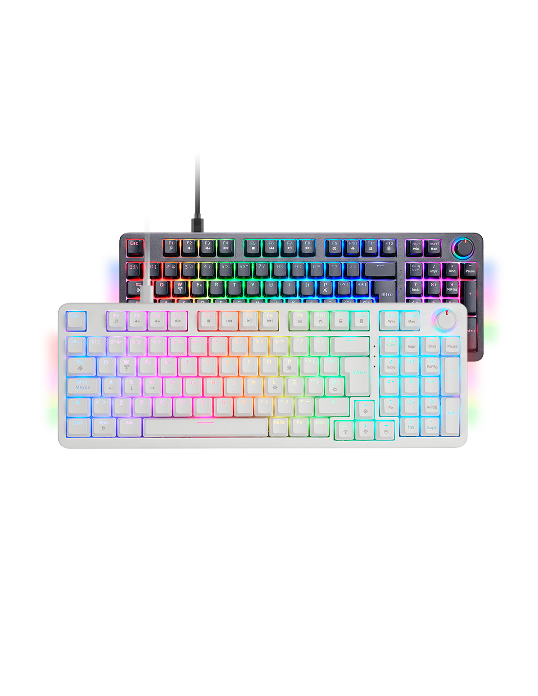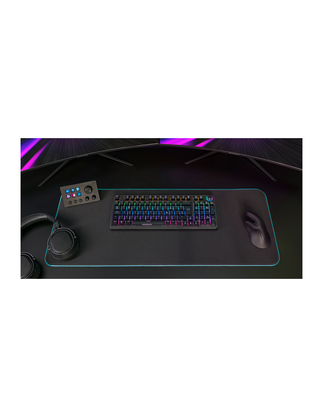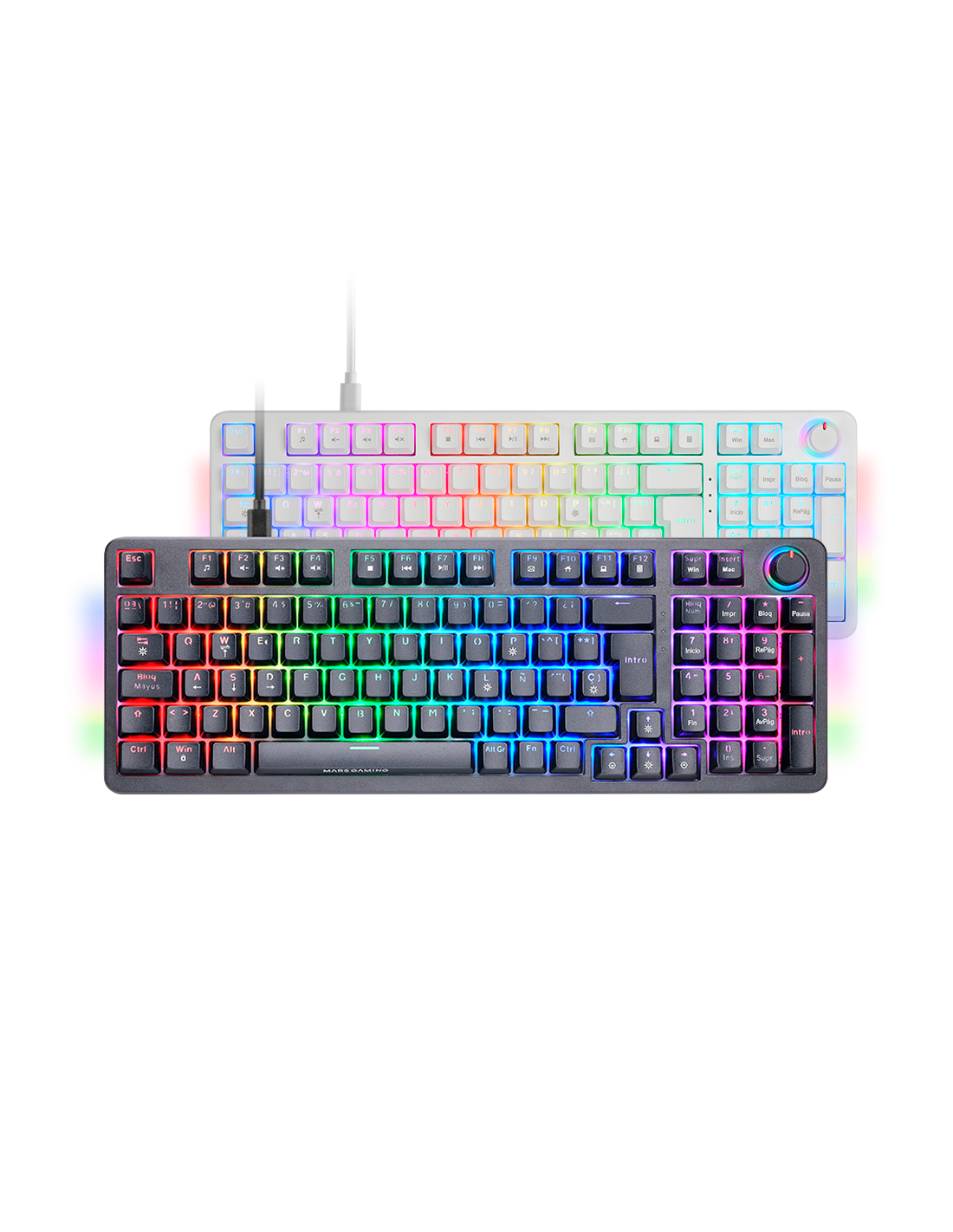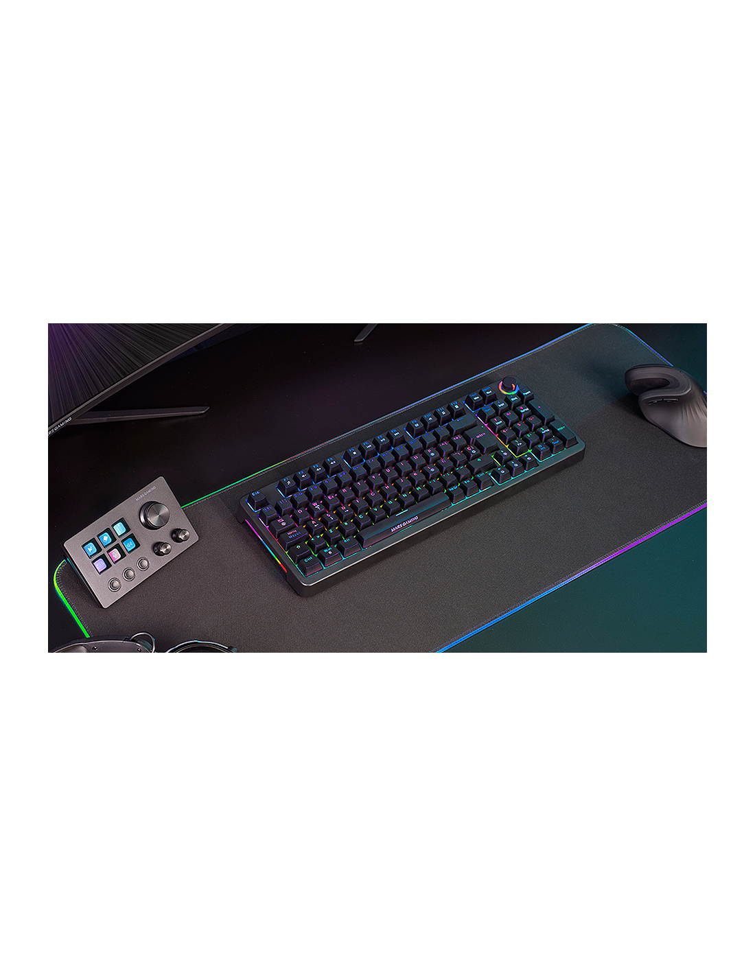 The MKPRO is the definitive mechanical keyboard for those seeking professional performance, advanced customization and maximum comfort. With a complete format, it incorporates a multifunction control wheel that allows you to adjust the volume, manage multimedia functions and customize the experience with ease. Its design combines hot-swappable mechanical keys, RGB lighting and QuietCore technology, ensuring a fluid and silent writing and gaming experience.