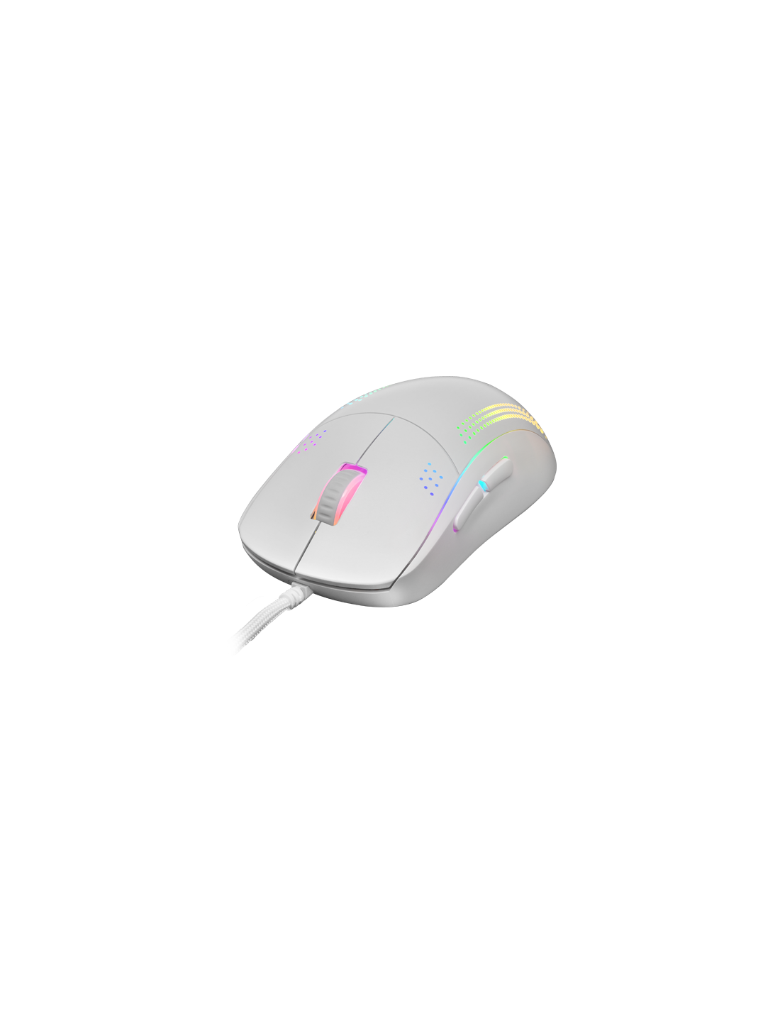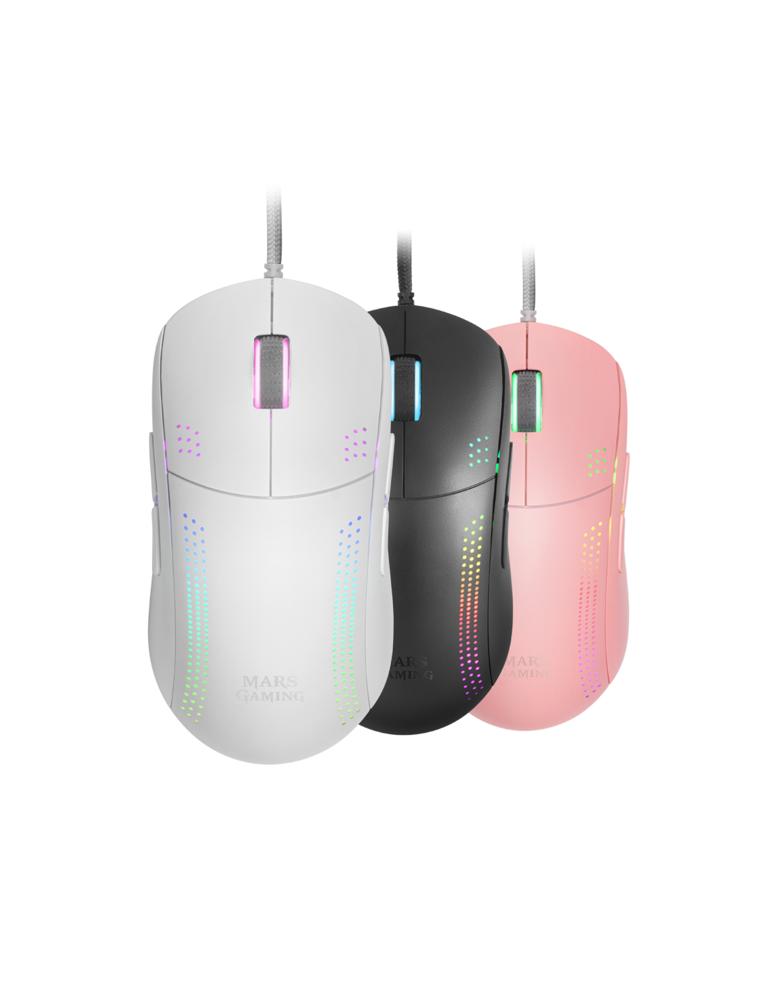 The best ambidextro professional mouse. Up to 32K DPI thanks to its Customized Pixart 3335Pro optics with advanced control, ambidextrous design with 4 magnetic lateral buttons, Kailh mechanical switches, 70gr ultralight structure with Hive Internal, Cable Feather Paracord, PTFE Base 100%, RGB Chroma Lighting, Programmable Software. In addition, you can choose between 3 available versions: black, white and pink.
