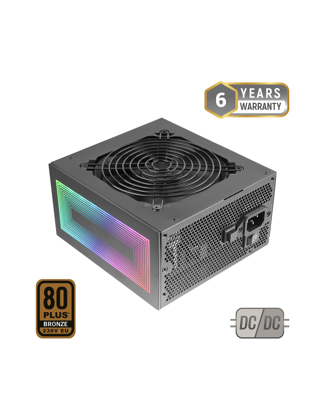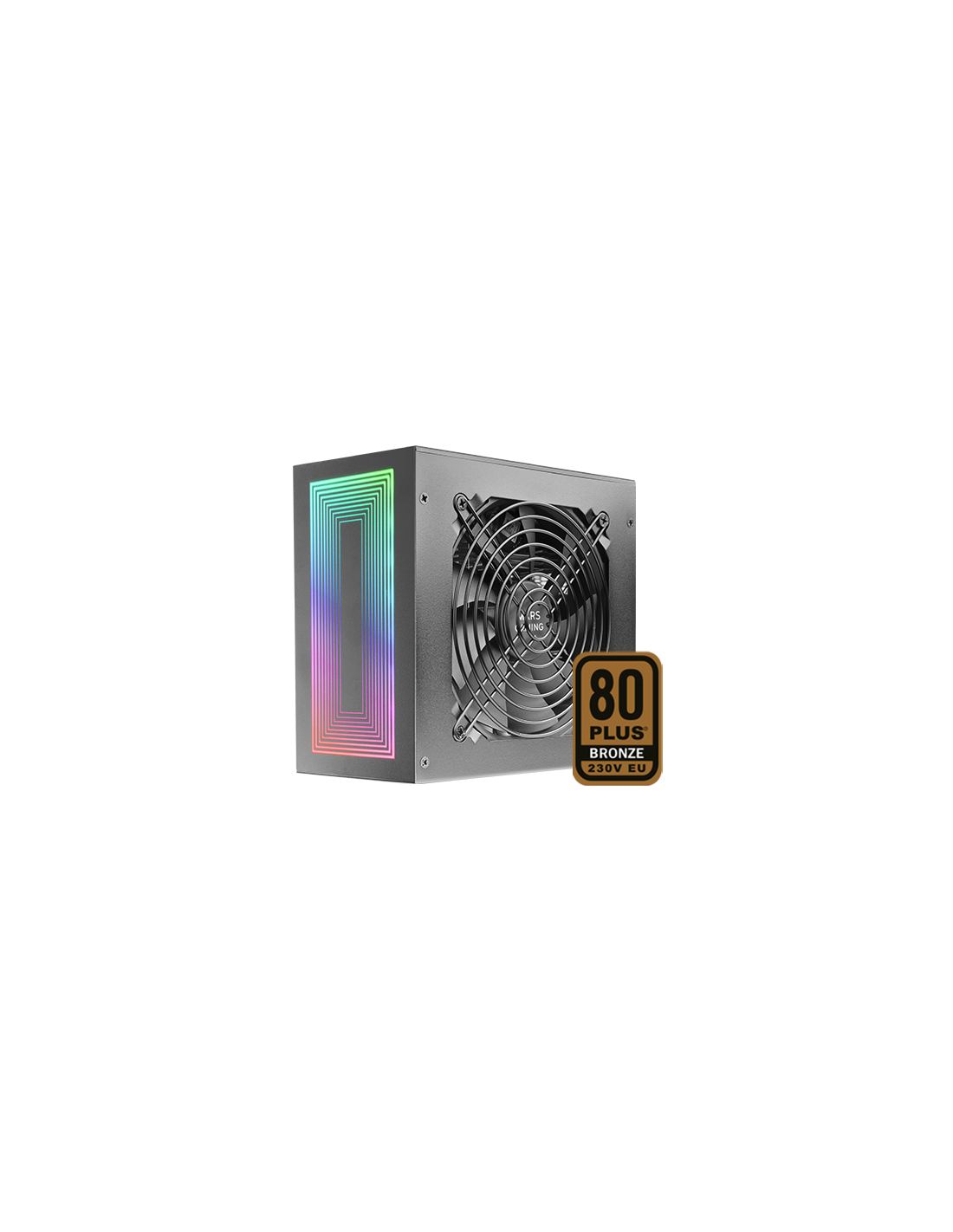 The MPB750S 750W ATX power supply with ARGB lighting combines power, efficiency, reliability and style. With advanced technologies such as DC-DC and SMD, and a single +12V rail, it offers up to 99% efficiency with Active PFC technology. Its 80PLUS BRONZE certification guarantees over 90% efficiency, reducing power consumption and operating costs. It includes OVP, UVP, OCP, OPP and SCP protections, and is backed by a 6-year warranty. Its ultra-quiet fan with AI-RPM technology and the source's synchronizable ARGB lighting add functionality and style, while the flat, extra-long cables ensure tidy installation and optimal thermal performance.
