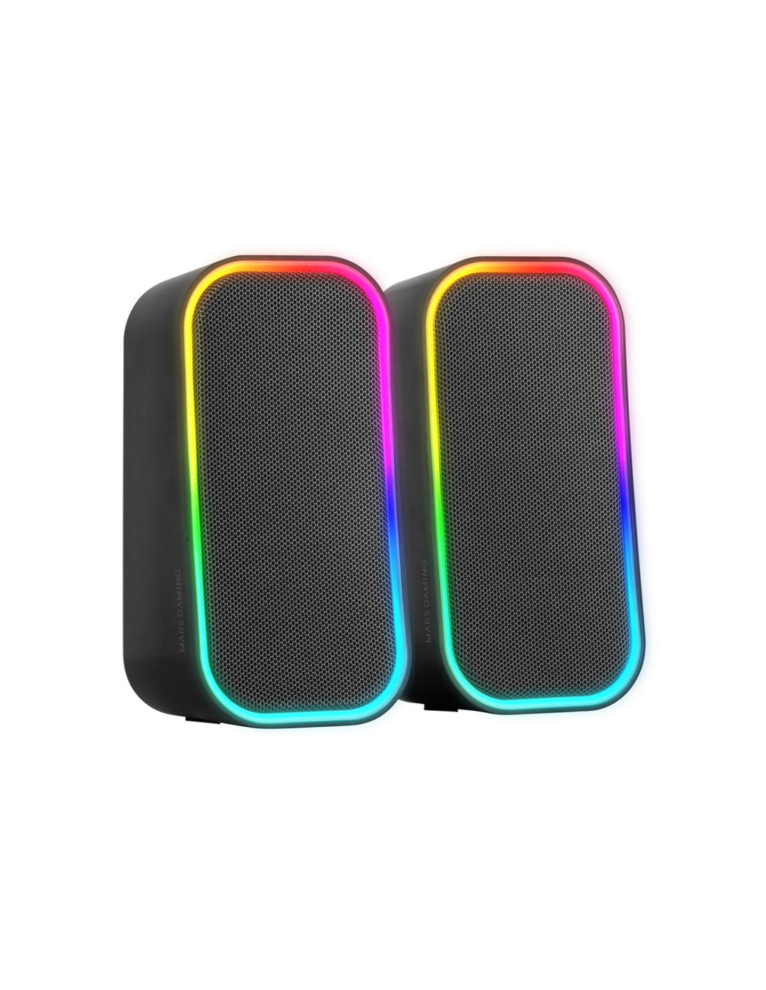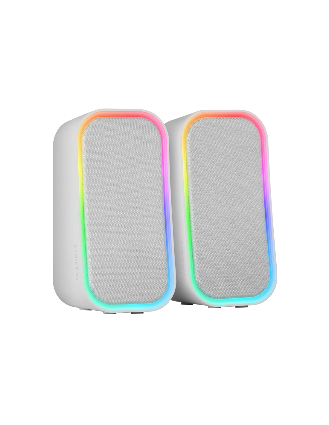 Transform your game with the 20W MS-OM speakers and advanced DSP chipset that offer a clear and enveloping sound. Available in black and white, these speakers stand out on your setup with its front design in textile mesh and a dynamic RGB lighting. With Bluetooth 5.3 and Aux-in connectivity, control box and universal compatibility, MS-OM are the perfect complement for your setup.