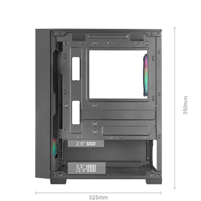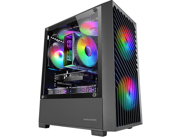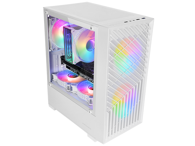 La MC-VORTEX es la caja gaming perfecta para quienes buscan potencia en un formato compacto. Su diseño MicroATX con frontal Mesh, ventana de cristal templado y 3 ventiladores FRGB Rainbow ofrece un rendimiento térmico excelente y un look espectacular. Con capacidad para hasta 7 ventiladores, soporte para refrigeración líquida, diseño de doble cámara y espacio para los componentes más avanzados, la MC-VORTEX fusiona rendimiento, estilo y funcionalidad.