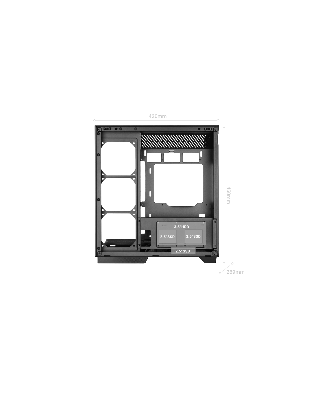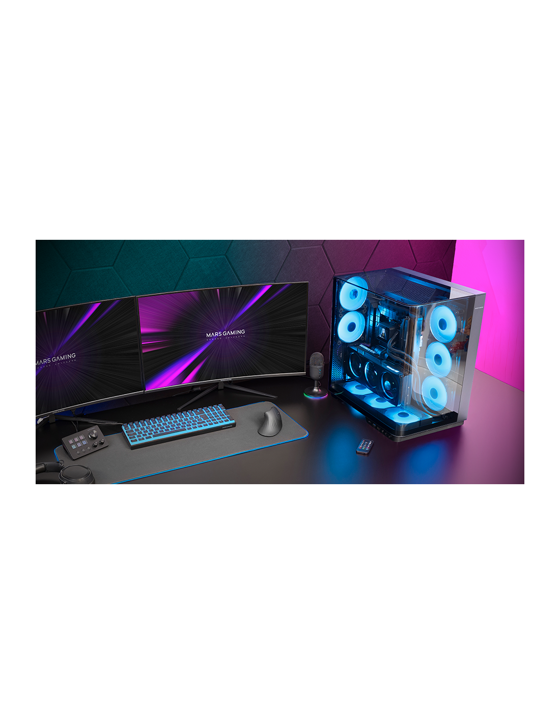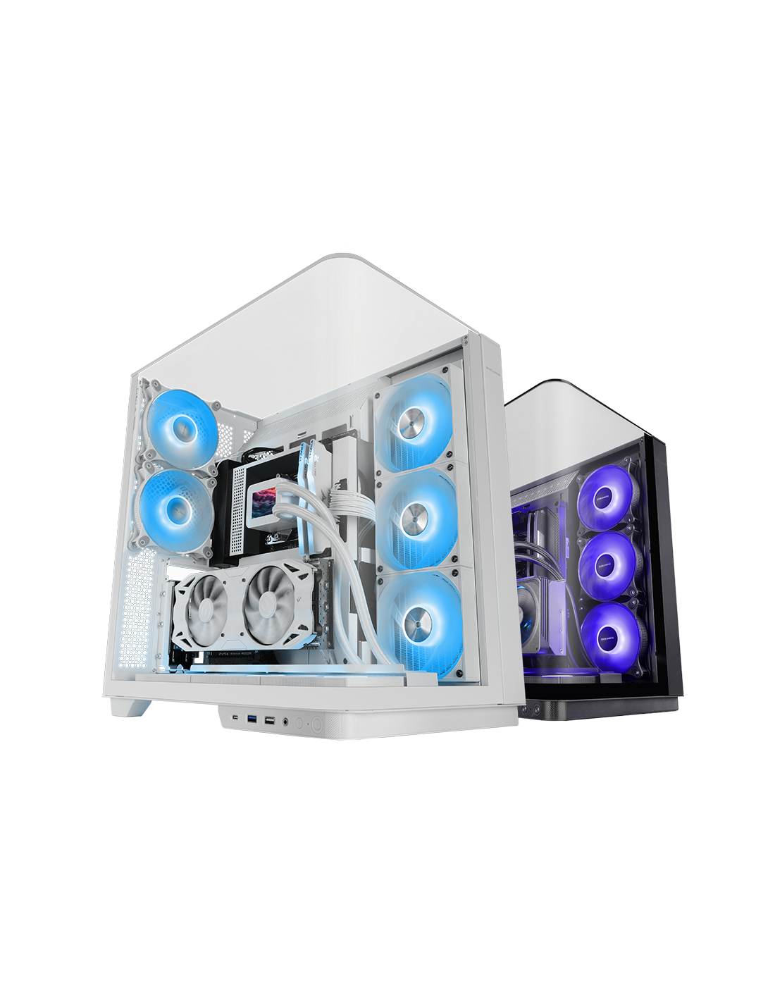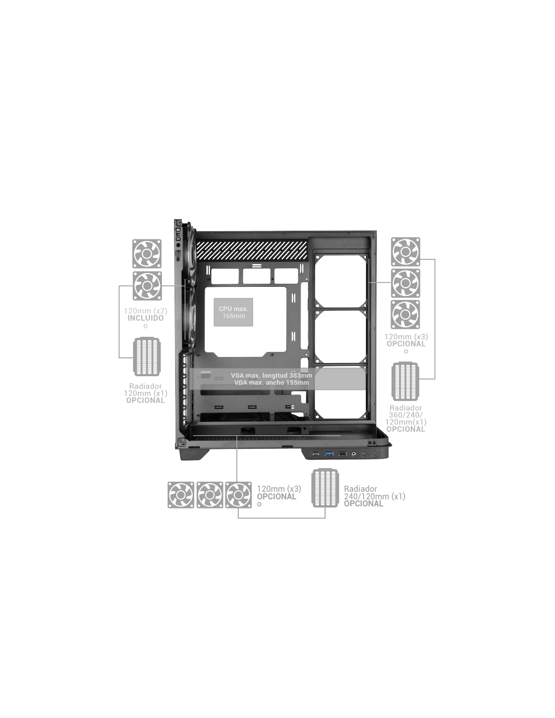 La torre MC-INFINIO lleva el diseño gaming a otro nivel con su estructura envolvente y visión panorámica sin interrupciones. Su exclusivo cristal templado curvado horizontal, extendido en una sola pieza desde el frontal hasta el lateral, junto con un panel superior de cristal, crean un efecto fluido y sin marcos que realza cada componente e iluminación ARGB. Equipada con 2 ventiladores ARGB traseros preinstalados, soporte para hasta 8 ventiladores y refrigeración líquida de hasta 360mm, garantiza una disipación térmica. Su sistema de instalación vertical para GPUs, compatibilidad con tarjetas gráficas de hasta 383mm, bahías de almacenamiento versátiles y conectividad avanzada con USB-C la convierten en una opción perfecta en rendimiento, personalización y estética.
