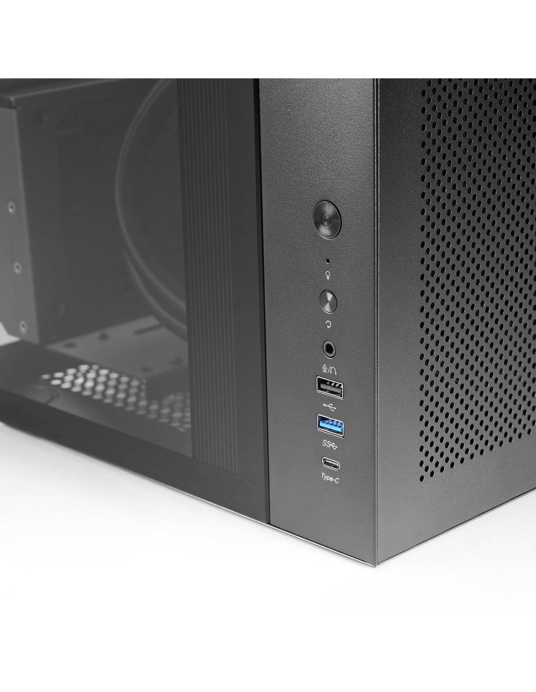 - USB C + USB 3.0 + USB 2.0 + Audio HD en el panel frontal